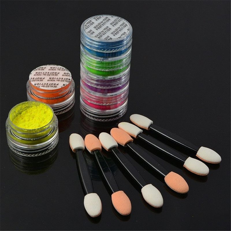 6 Cores Mistura/Conjunto Neon Solto Pó Sombra Pigmento Fosco Mineral Splangle Prego Pó Compõem Shimmer Brilhante Sombra De Olho