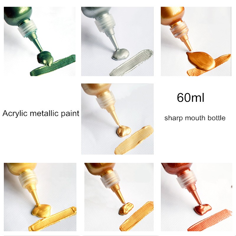 60mlgolden tinta acrílica diymetallic pintura de parede foguang ouro à prova dwaterproof água líquido mão pintura pigmento boca pontiaguda engarrafada