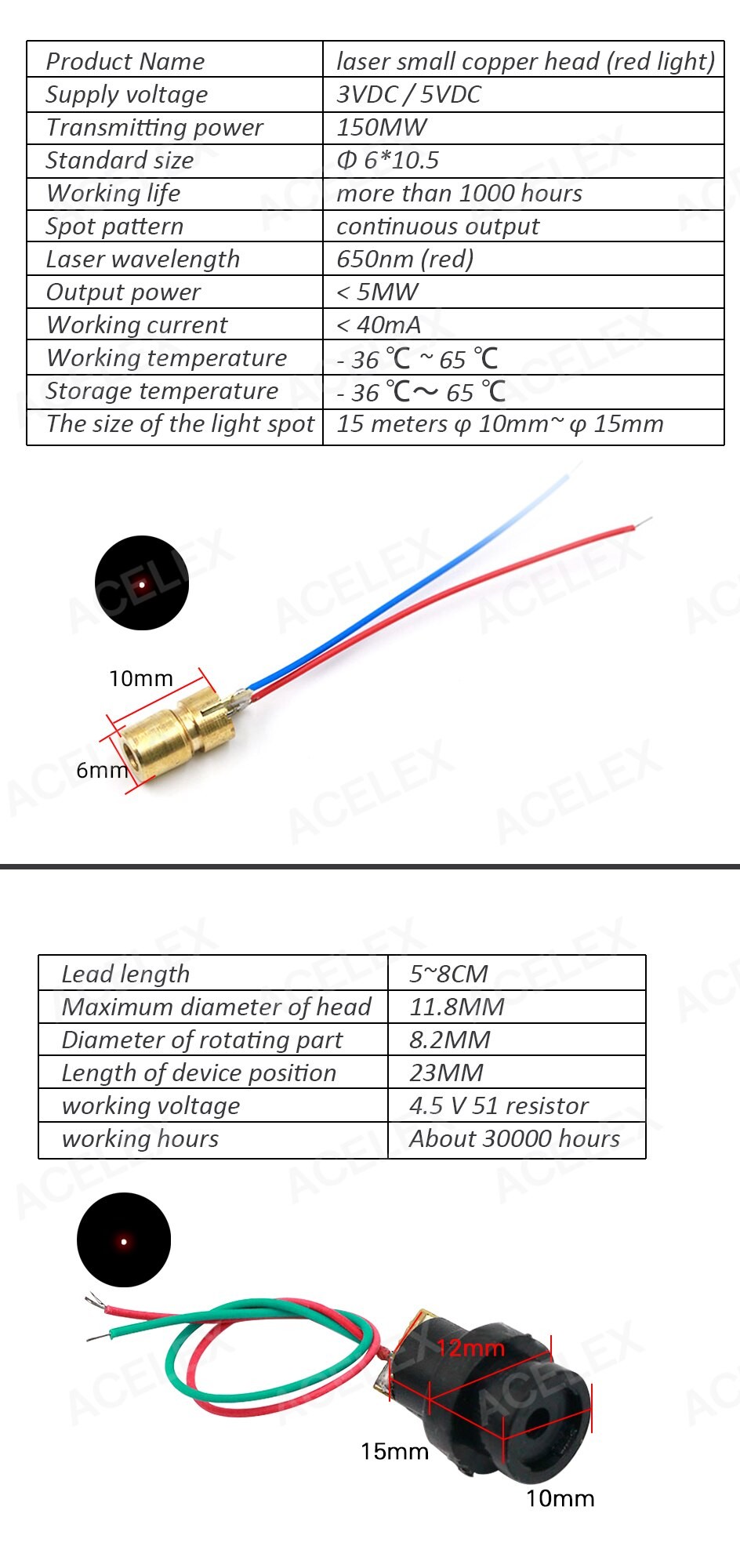 Número do modelo: 650nm 5mW Ponto vermelho / linha / laser cruzado Lente de vidro da cabeça do módulo Foco