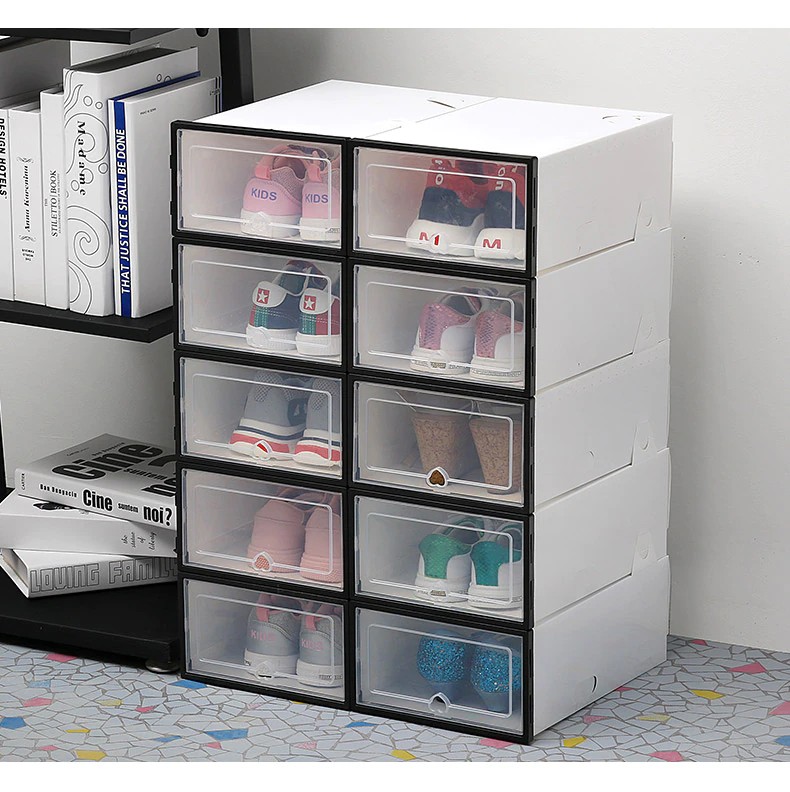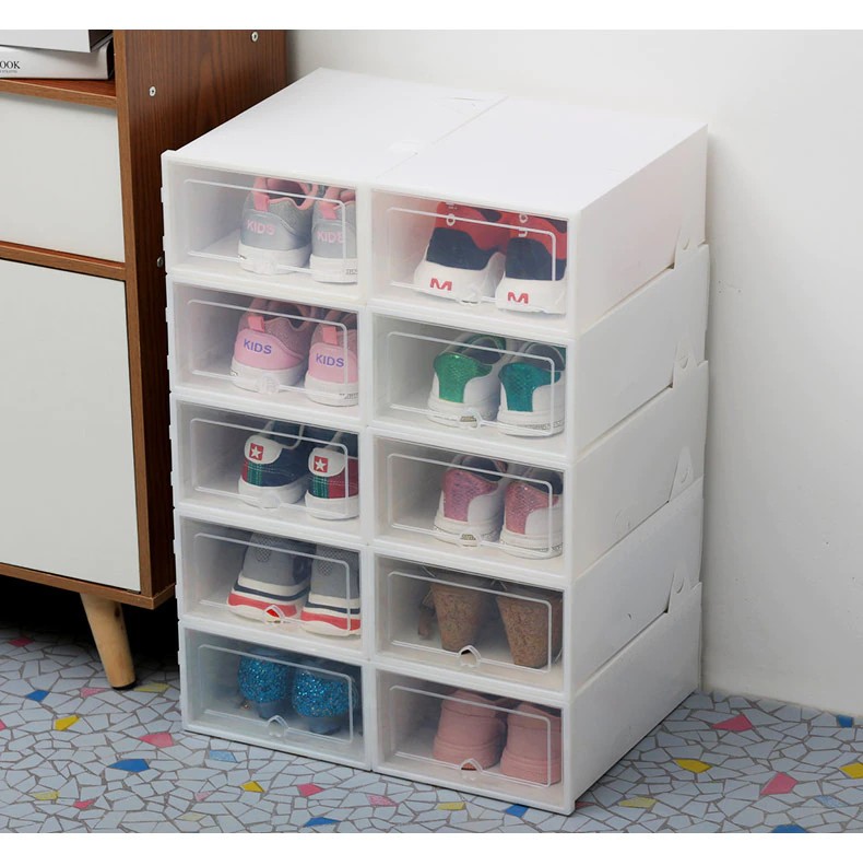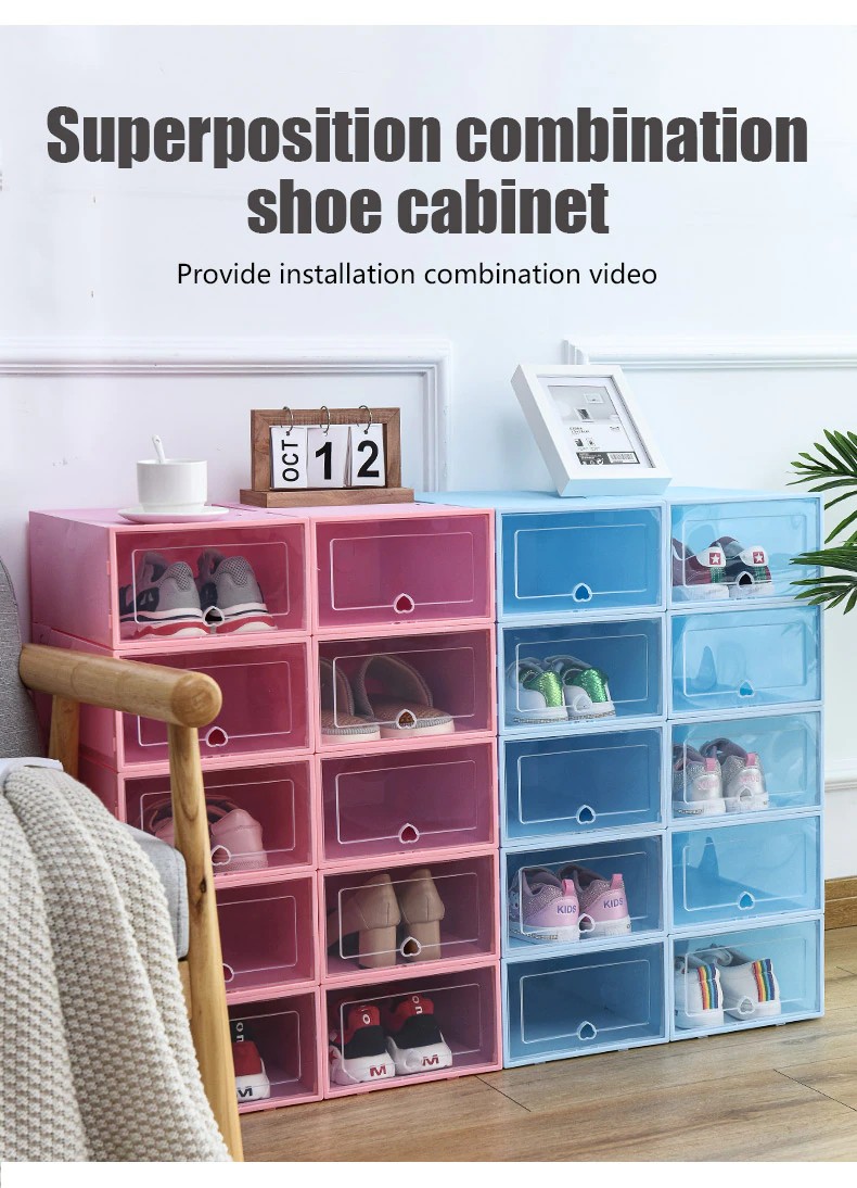 6 Pacote Transparente Sapatos Caixa De Sapato Organizadores Espessamento Dobrável Dustproof Caixa De Armazenamento Plástico Empilhável Combinado Sapato Cabinetsale