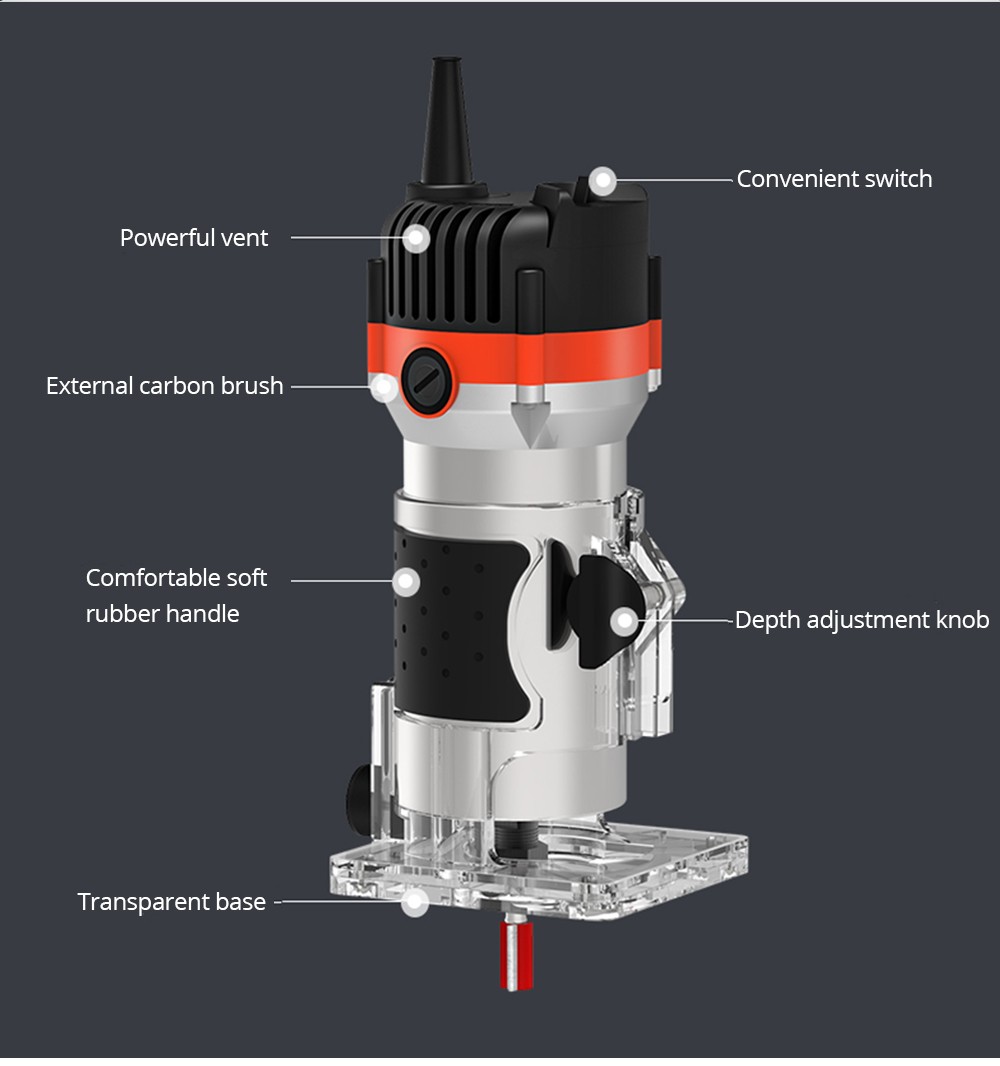 Tensão: 220v (plugue da ue)/potência de entrada: 800w/nenhuma velocidade da carga: 30000rpm/frequência: 50 / 60hz/diâmetro do aro: 6.35mm