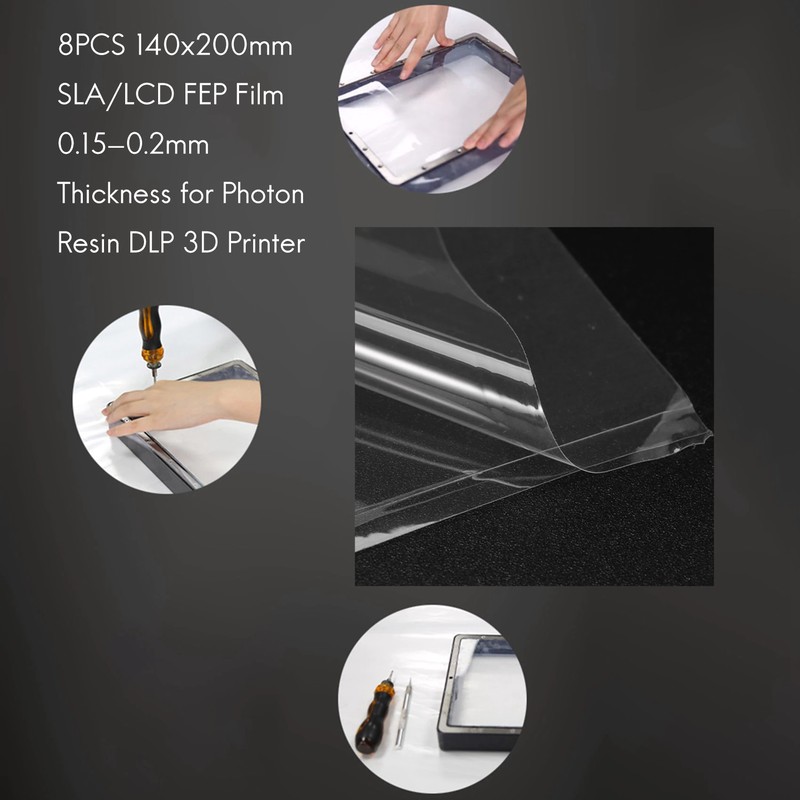 Filme 140X200Mm Sla/Lcd Fep, 8 Peças, 0.15-0.2Mm De Espessura Para Impressora 3D Photon Resina Dlp