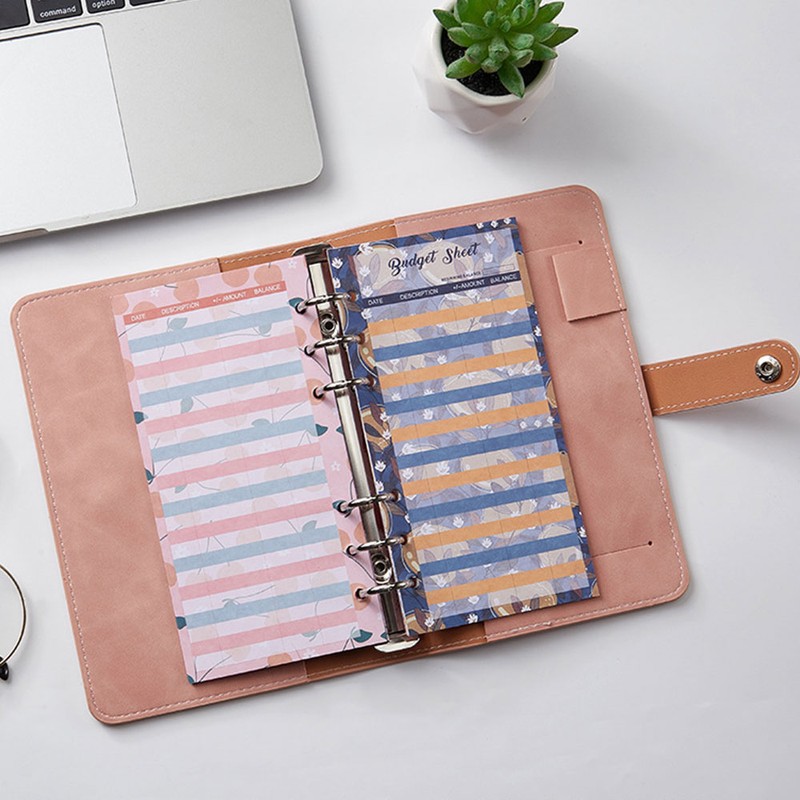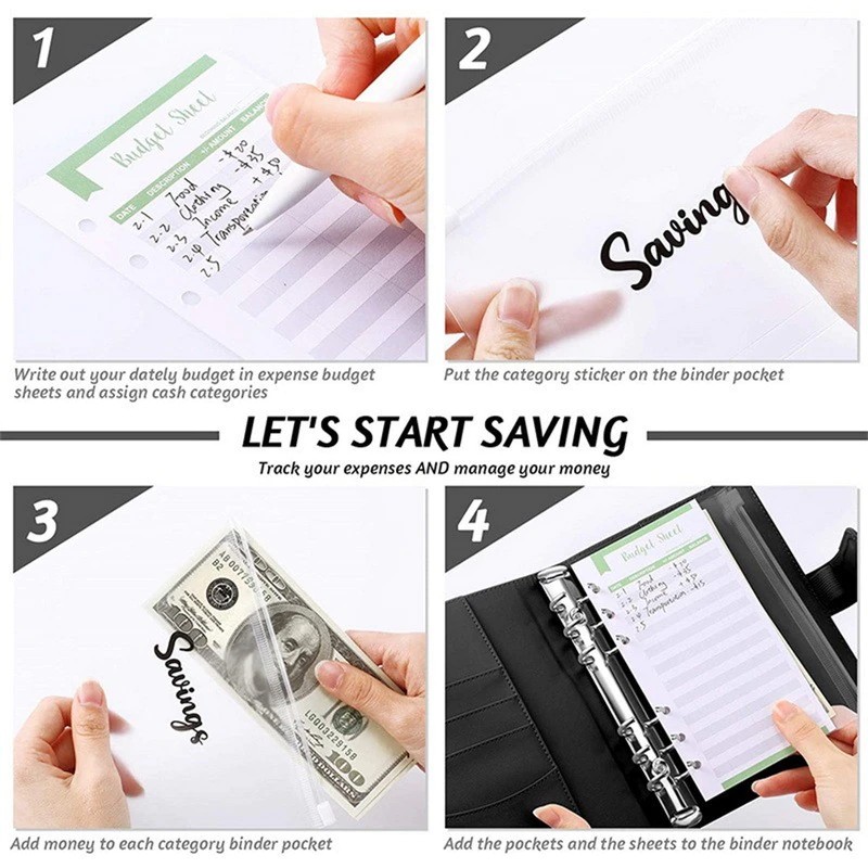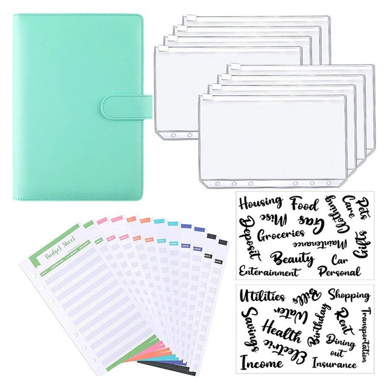 A6 Binder Orçamento Planejador Caderno Cobre Pasta A6 Tamanho 6 Buraco Binder Bolsos De Plástico Com Zíper De Poupança De Dinheiro Envelope