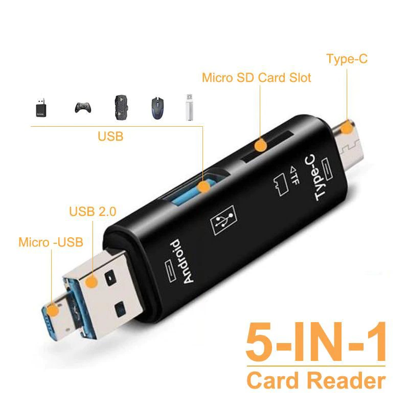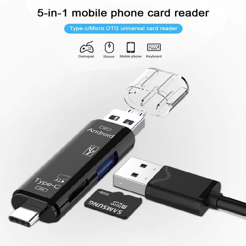 5 em 1 multifunction de alta velocidade usb 2.0 tipo c/leitor de cartão sd/micro usb/tf leitor de cartão de memória