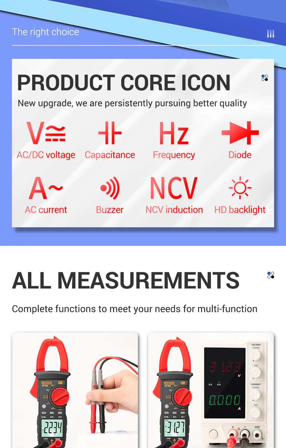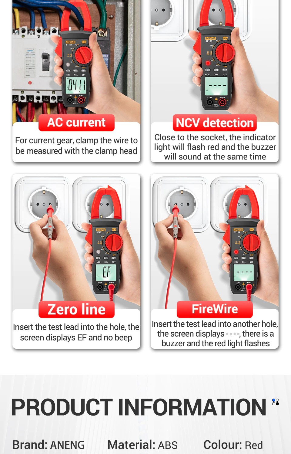 Aneng St181 Alicate Amperimetro Digital Clamp Meter Alicate Amperimetro Minipa True Rms Medidor De Braçadeira Dc/Ac Atual 4000 Contagens Multímetro Amperímetro Tensão Testador Carro Amp Hz Capacitância Ncv Ohm Teste
