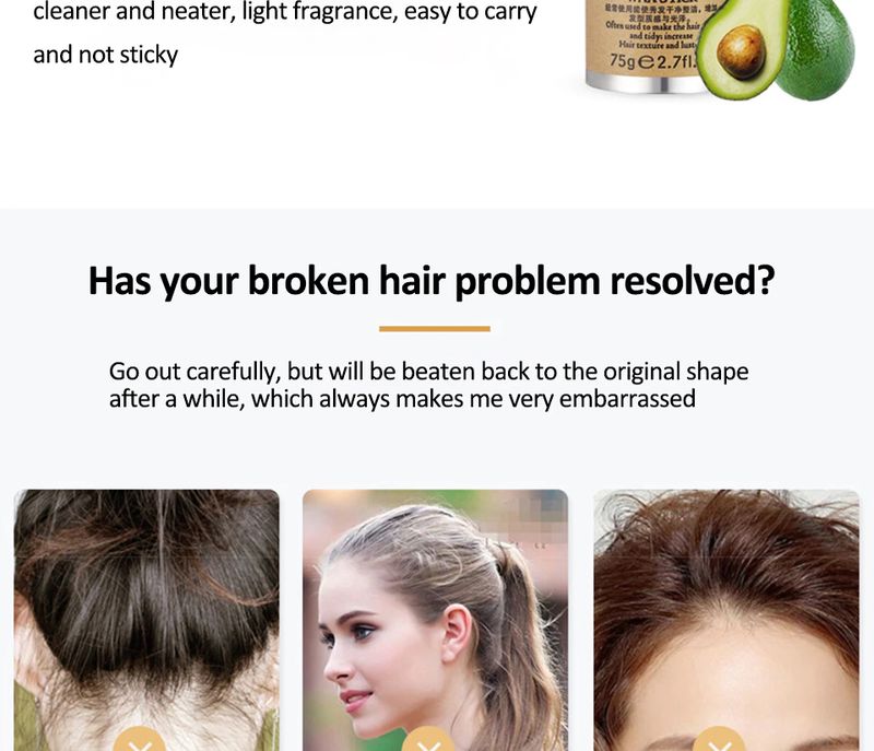 Abacate cera cabelo profissional creme de acabamento de cabelo não gorduroso óleo para cabelo estilo pomade stick unissex