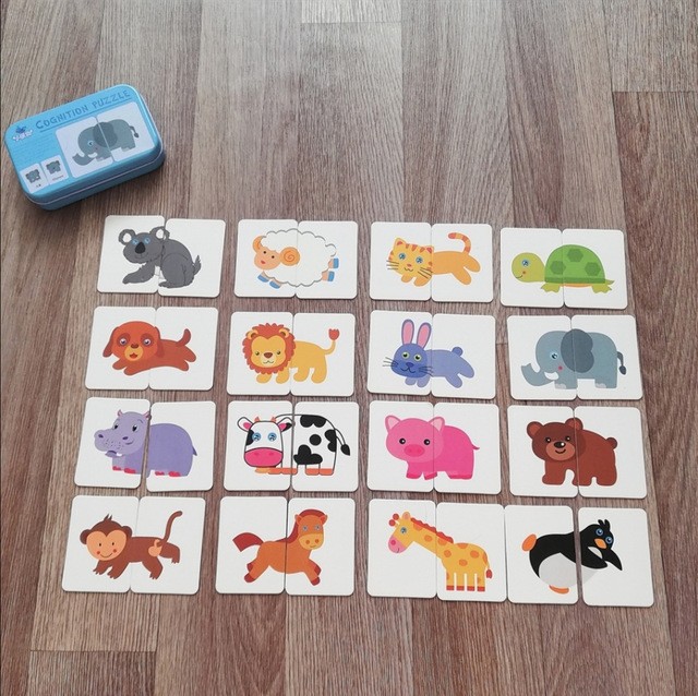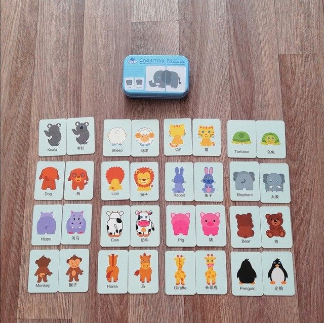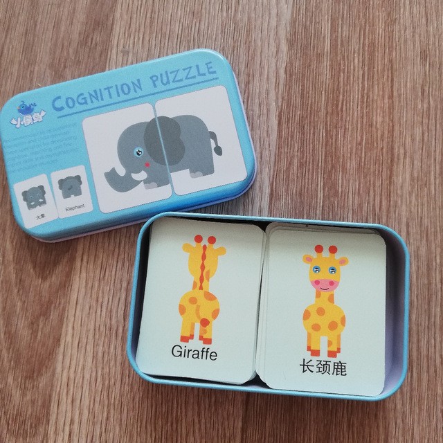 Bebê Cognição Quebra-Cabeça Brinquedos Criança Crianças Caixa De Ferro Cartões De Correspondência Jogo Cognitivo Cartão Carro Frutas Animal Vida Puzzle