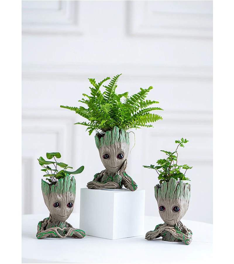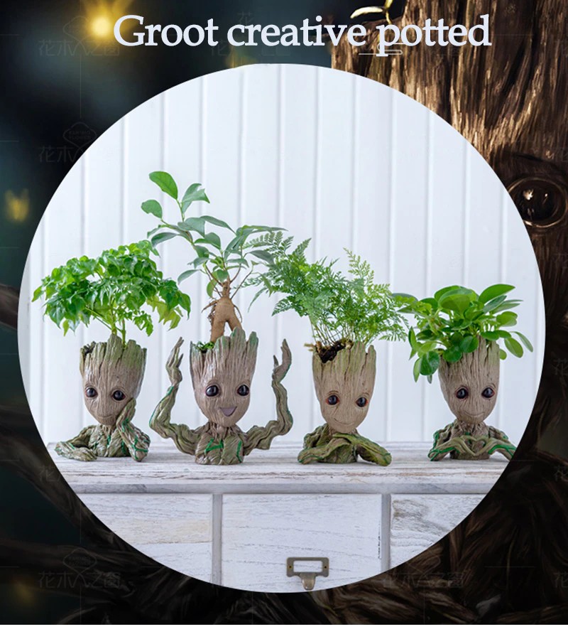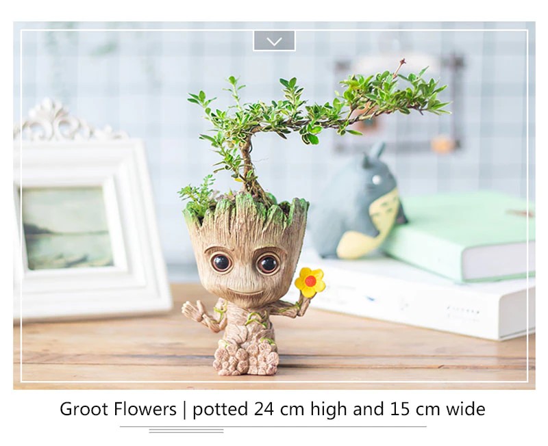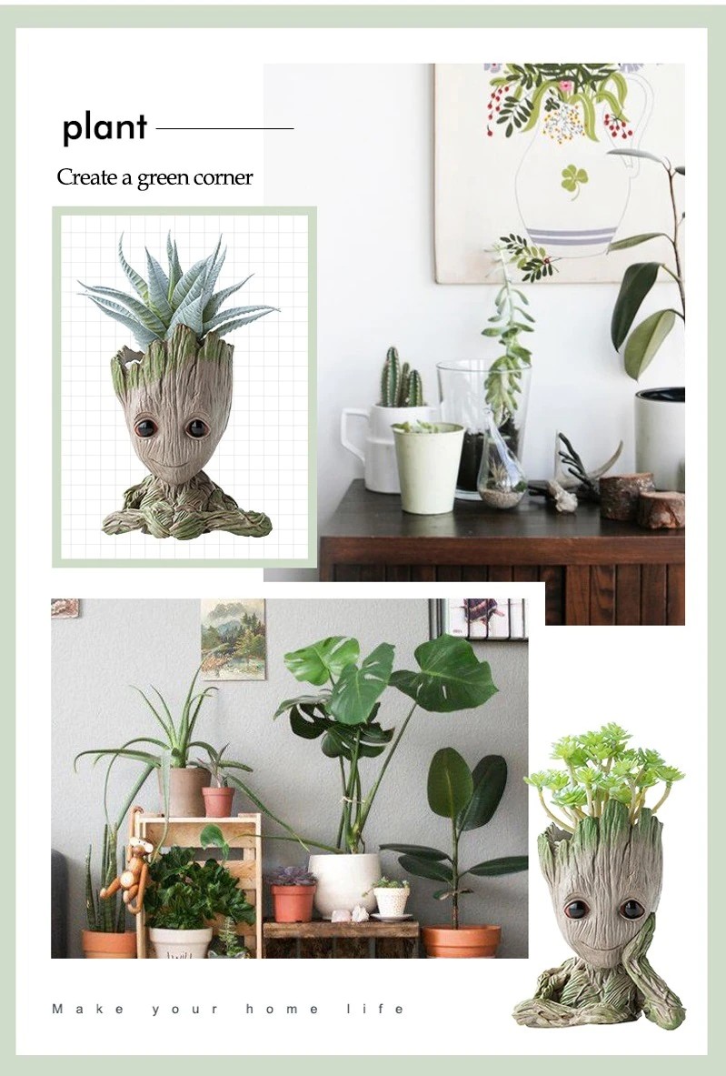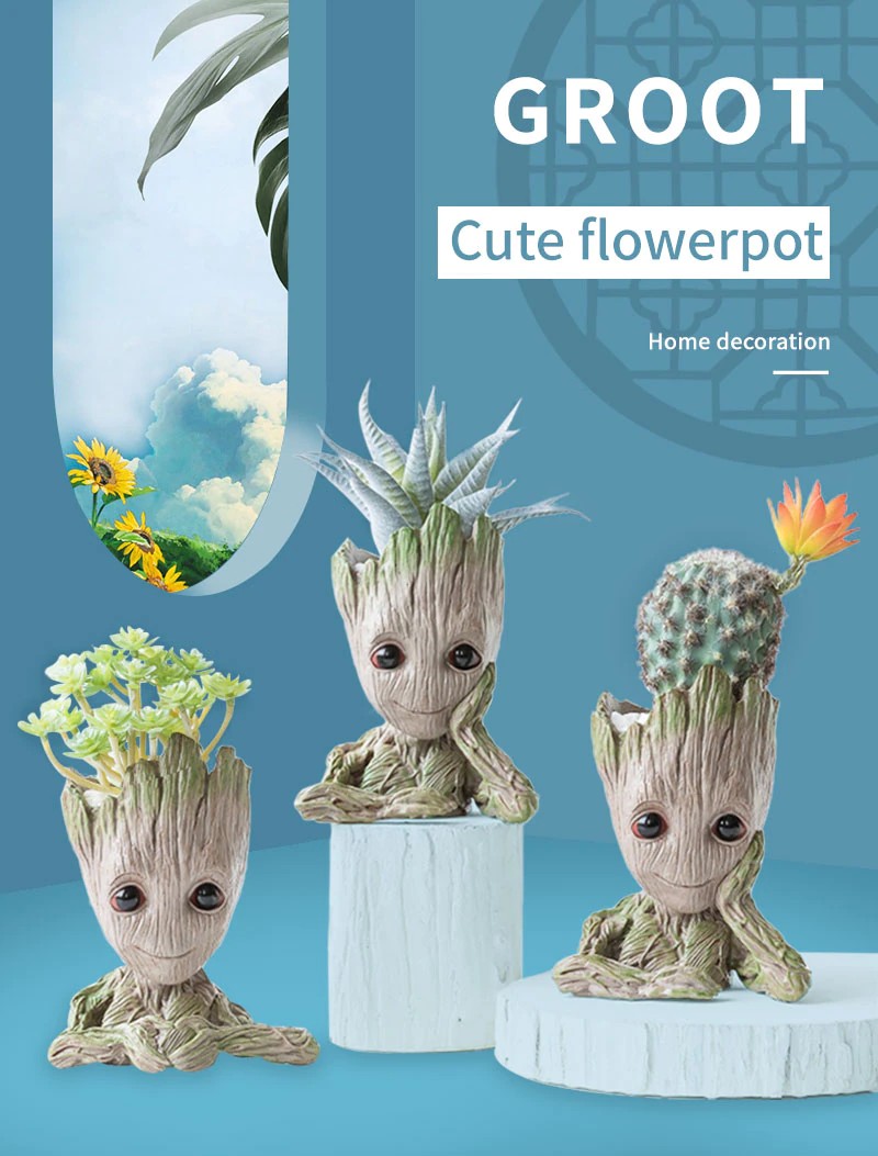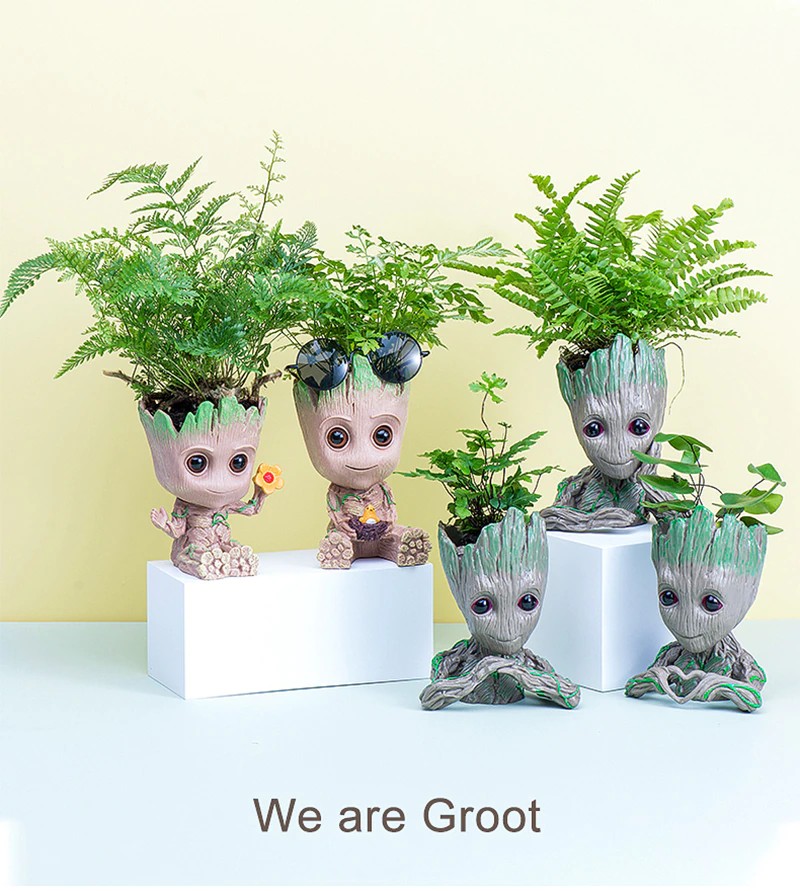 Bebê Groot Bonito Vaso De Flores Suculentas Vasos De Flores Por Atacado Estatuetas De Plástico Decoração Caneta Titular Brinquedos Ornamentos Para Casa Jardim