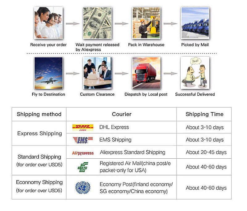 4. tempo de entrega: normalmente levaEm torno de 15-30 dias úteisMas às vezes pode ser atrasado até30-60 dias úteisPorque os tempos de trânsito podem variar, particularmente duing a temporada de férias.