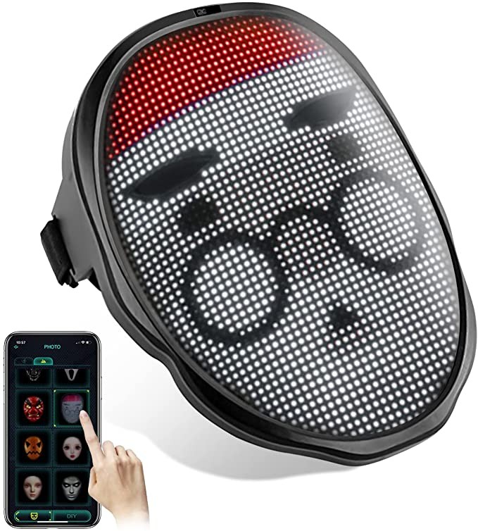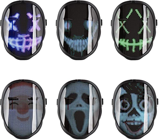 Bluetooth Rgb Light Up Led Máscara Diy Imagem Animação Texto Halloween Natal Carnaval Traje Festa Jogo Crianças Máscaras Deco Presente