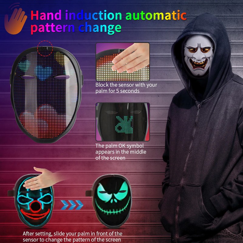 Bluetooth programável diy foto animação colorida led texto máscara masculina