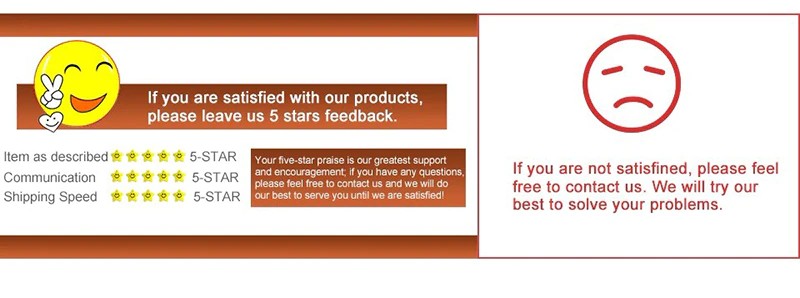 Se você não estiver satisfeito com nossos itens, entre em contato conosco. Faremos o nosso melhor para atendê-lo em 24 horas.