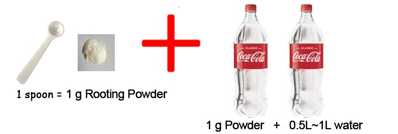 C: corte para aumentar a taxa de sobrevivência, 1g 1kg de água, raízes de plantas encharcadas ou corte imerso em 2-3cm de profundidade, mergulho por 2h.