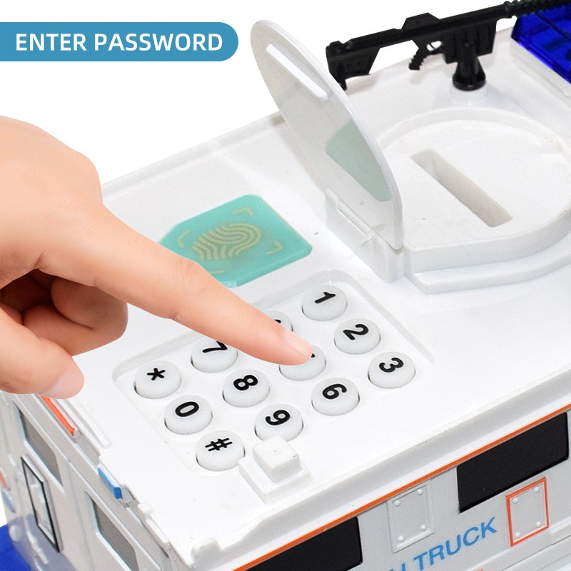 Piggy Banco Dos Desenhos Animados Brinquedos Música Inteligente Senha Banco De Moeda Do Carro Figura Brinquedo Fingir Jogar Economia De Dinheiro Caixa Crianças Carros De Polícia