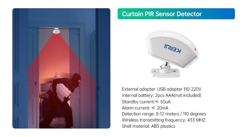 Kerui-Sistema De Alarme Residencial Sem Fio, Barata, Atualizado Sirene Buzina Com Detector De Movimento Diy Db, Alarme Anti-Roubo