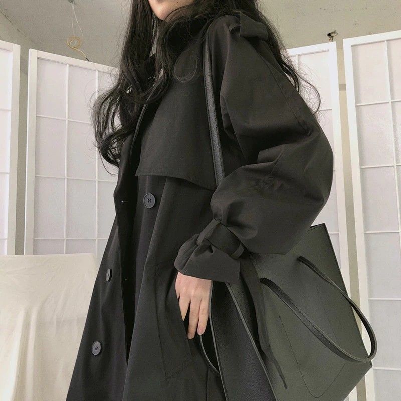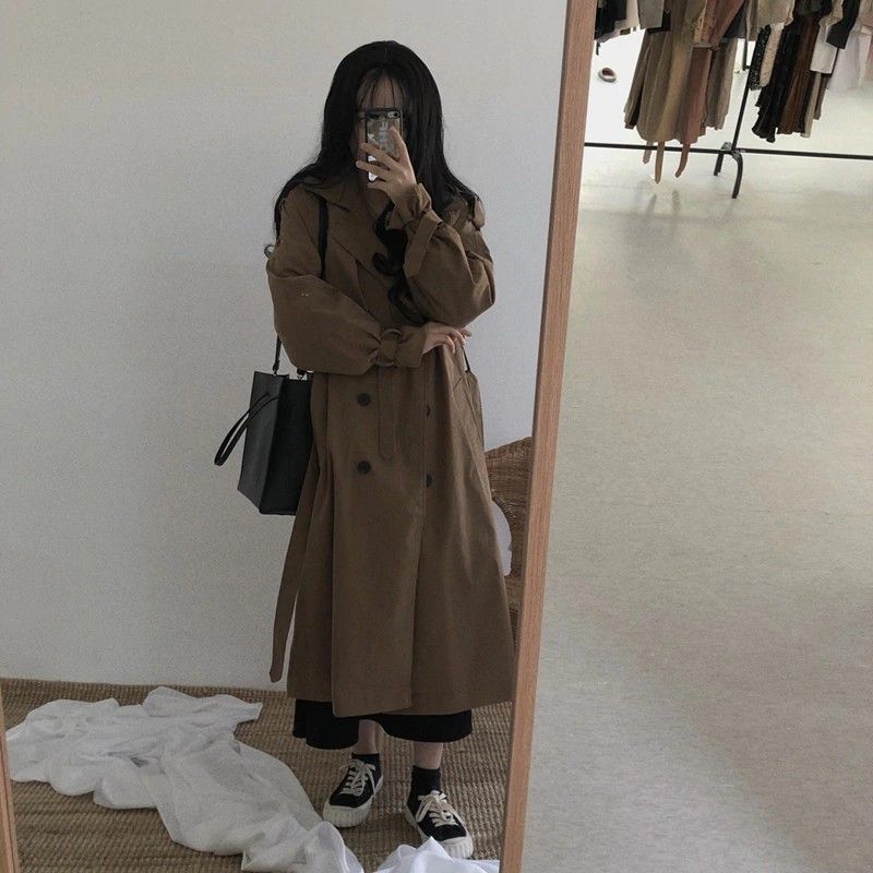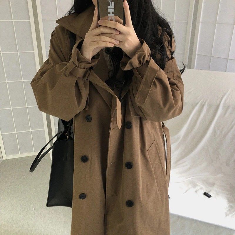 Chique Feminino Trench Coat Casual Longo agasalhos Solto Casaco Outono Inverno Moda Duplo Breasted Femme