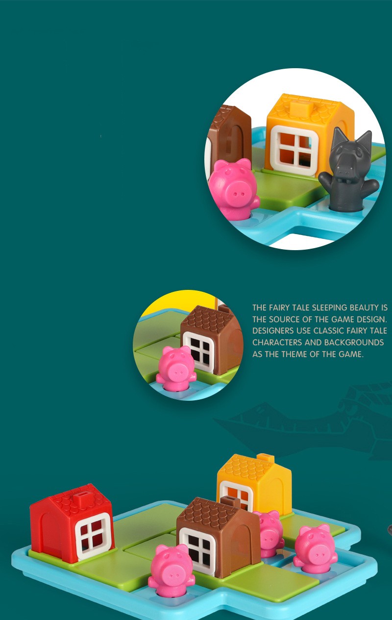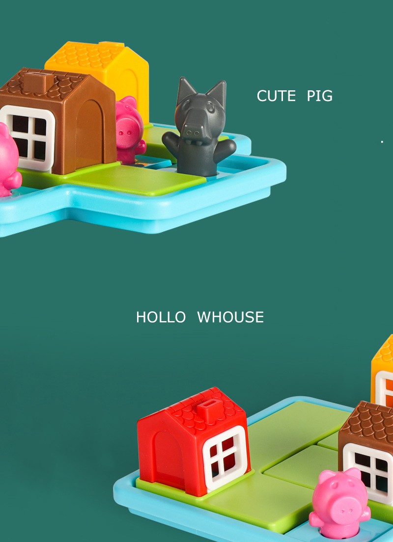 2 put coloque três quebra-cabeças no tabuleiro de jogo, encontrar uma casa adequada para o porco, e manter o lobo fora