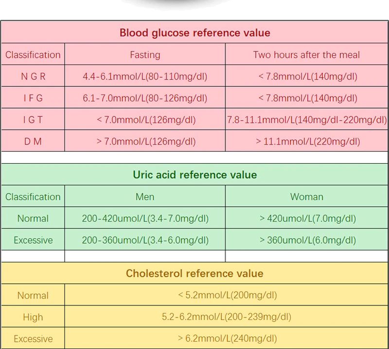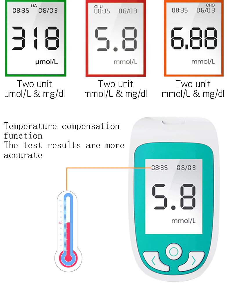 Modelo: colesterol guc e ácido úrico e tiras de teste de glicose no sangue