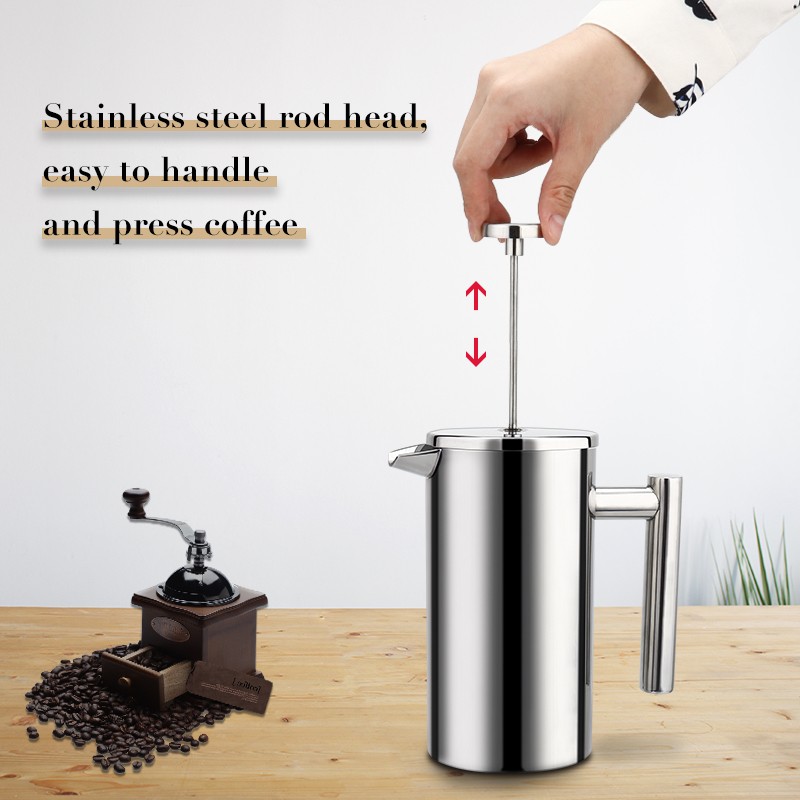 Fabricante de café imprensa francesa aço inoxidável máquina de café espresso alta qualidade dupla-parede isolada cafeteira 1000ml