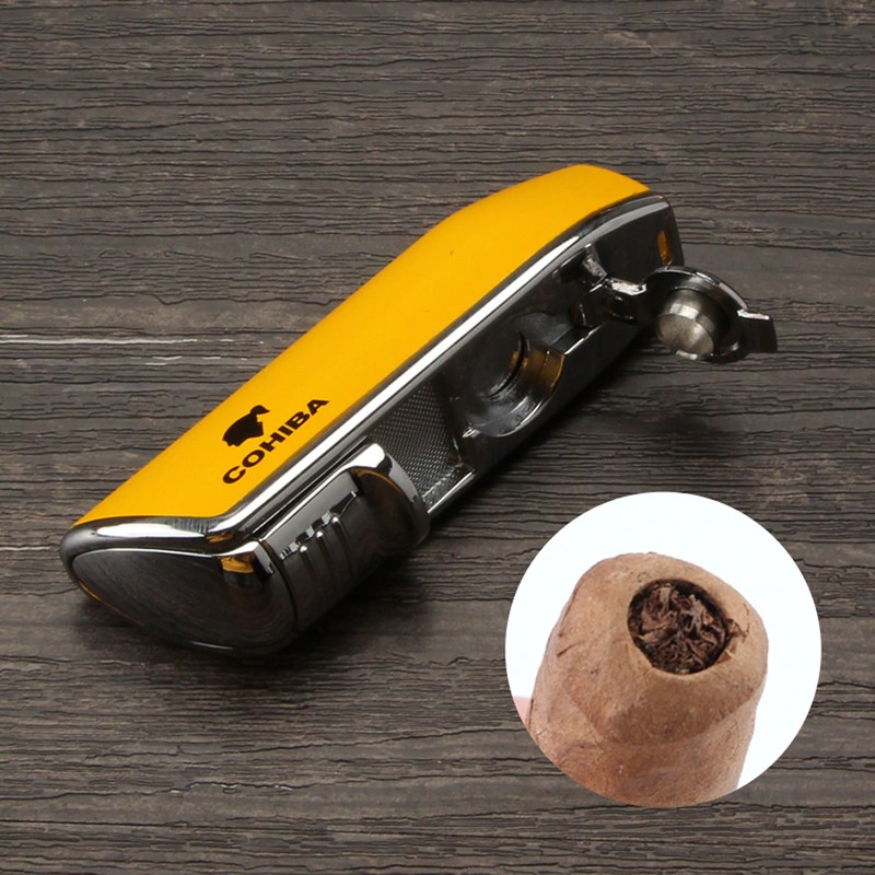 Cohiba Metal À Prova De Vento Mini Bolso Charuto Isqueiro 3 Jet Azul Chama Tocha Isqueiros Com Charuto Soco Presente Caixa