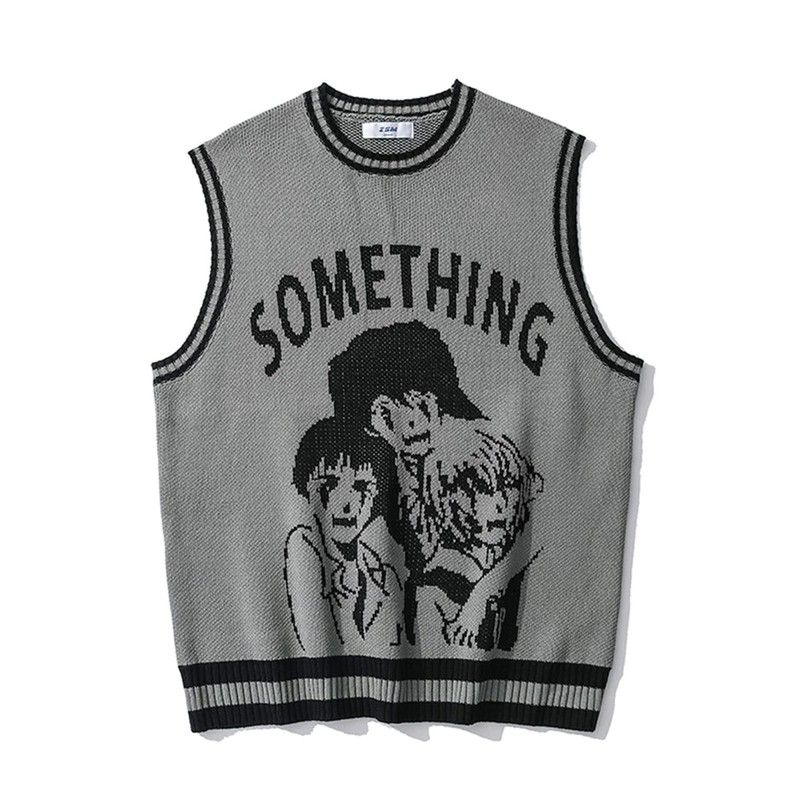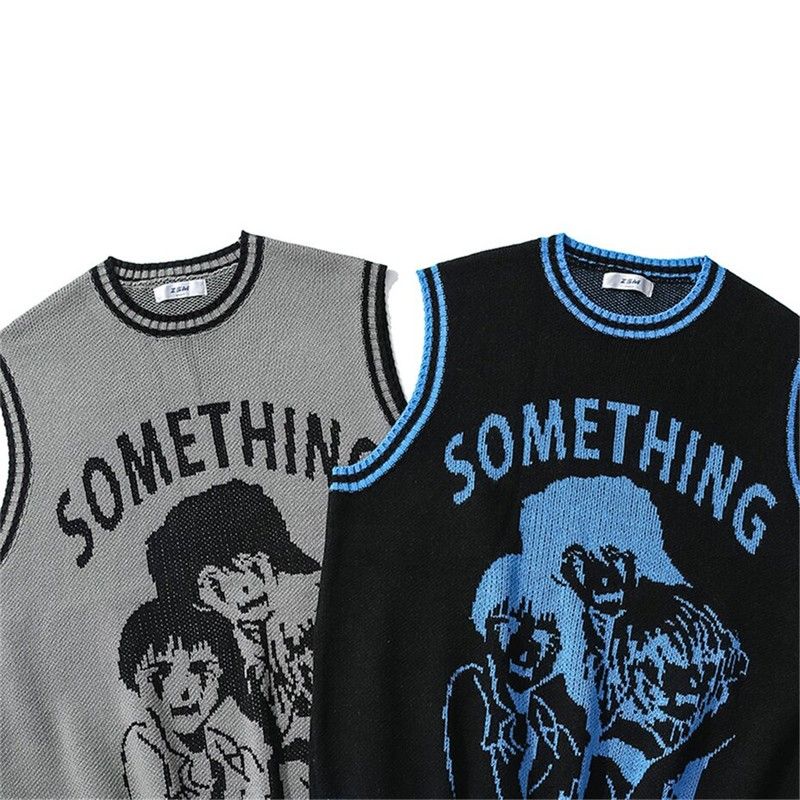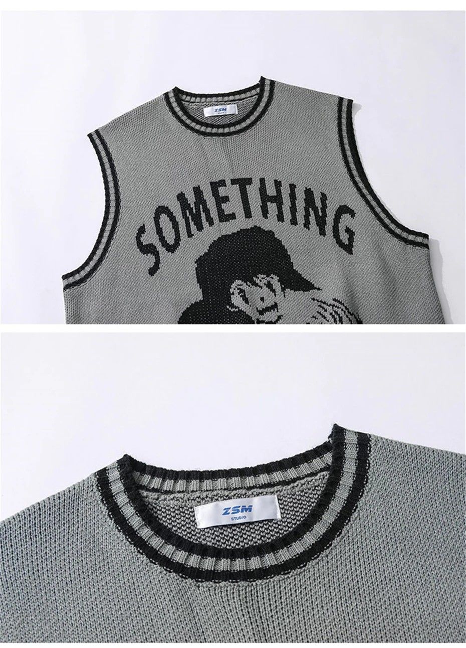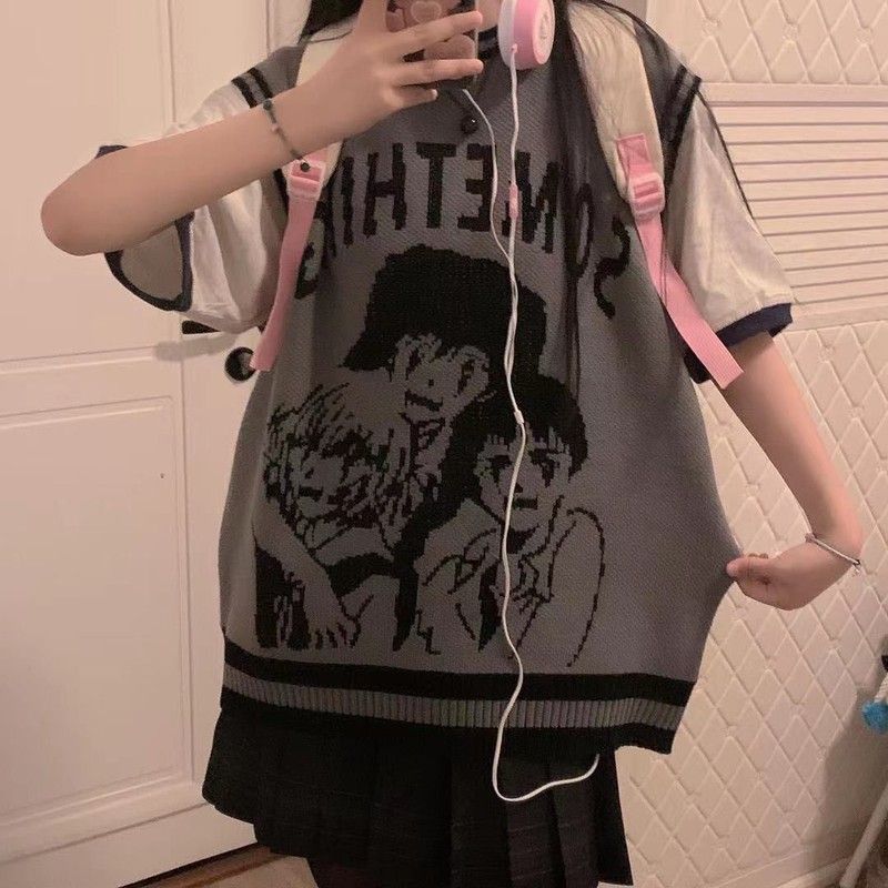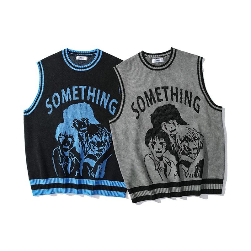 Colete de malha blusas streetwear hip hop casual desenhos animados com estampa de anime decote em o malhas suéter casaco masculino tops