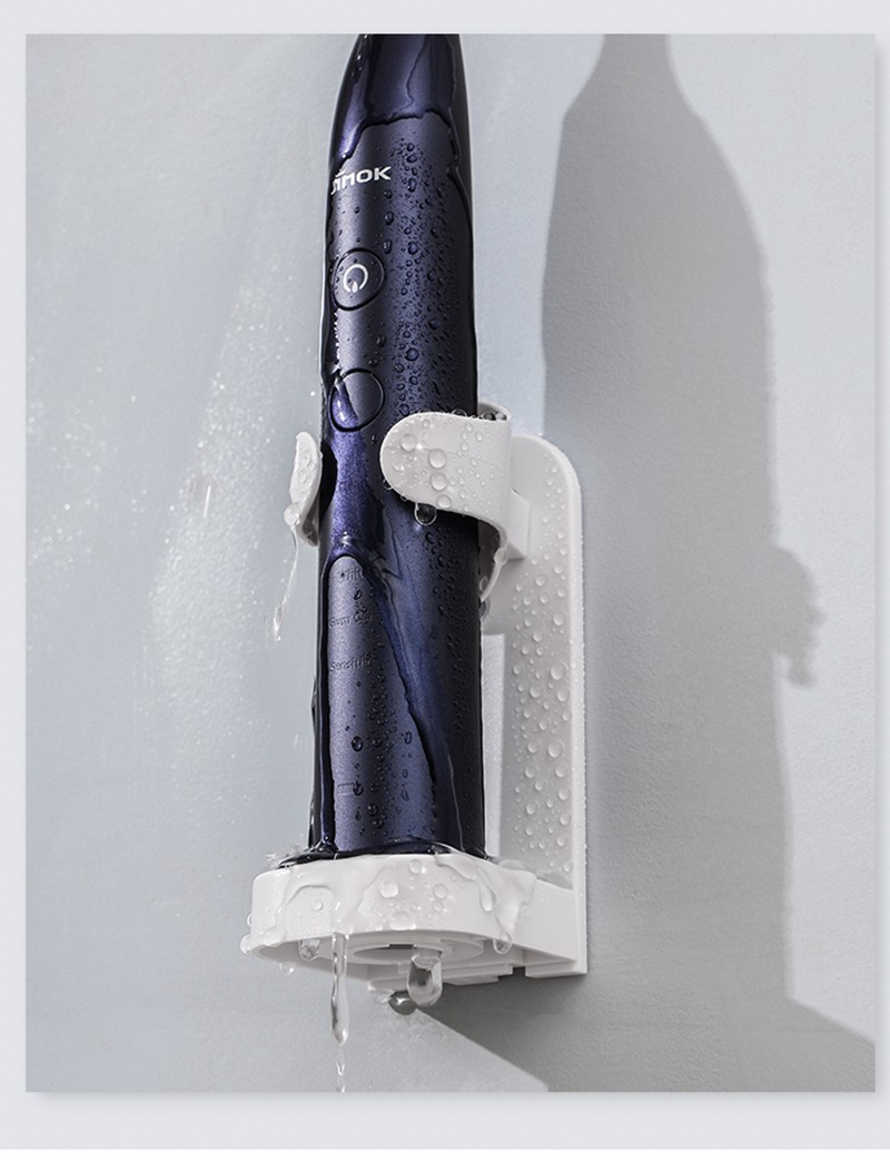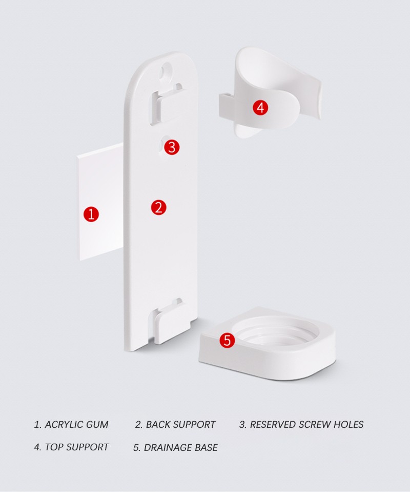 O suporte projetado para escovas de dentes elétricas é conveniente para armazenar, anexado à parede, sem manchas de água à esquerda, fácil de limpar