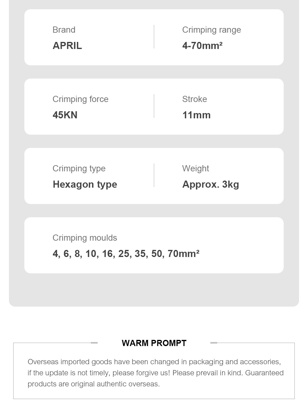 Pressão Hidráulica 5-6T Da Ferramenta Da Compressão Do Alicate 4-70Mm2 Do Crimper Talão Do Cabo Da Ferramenta Yqk-70 De Friso Hidráulico