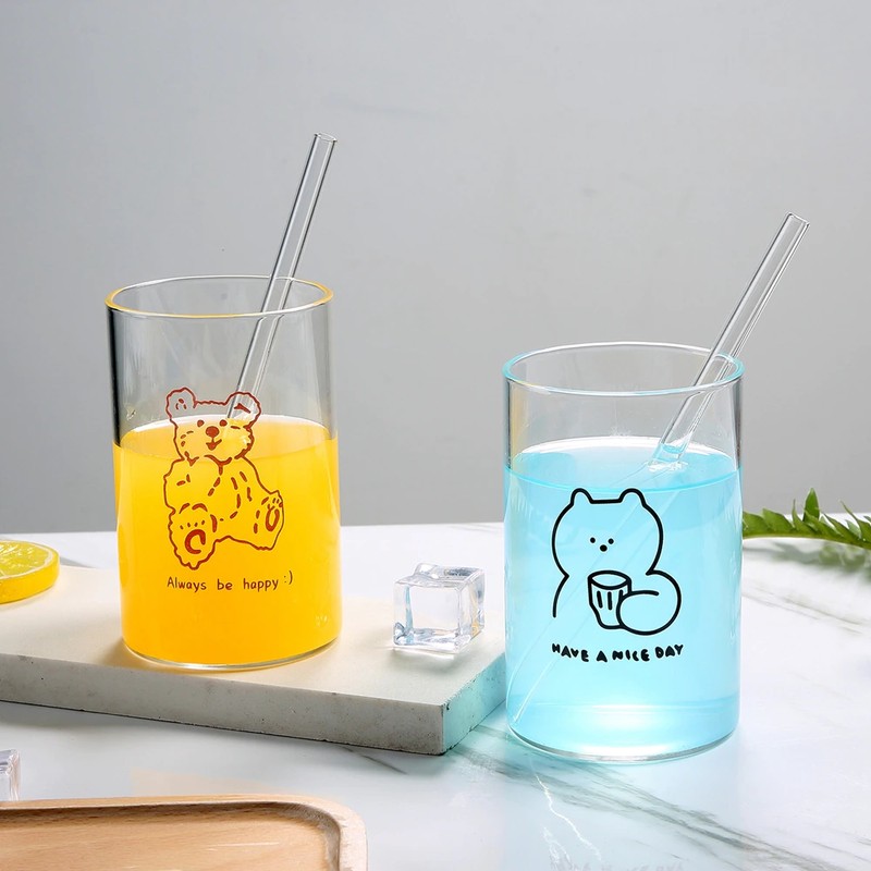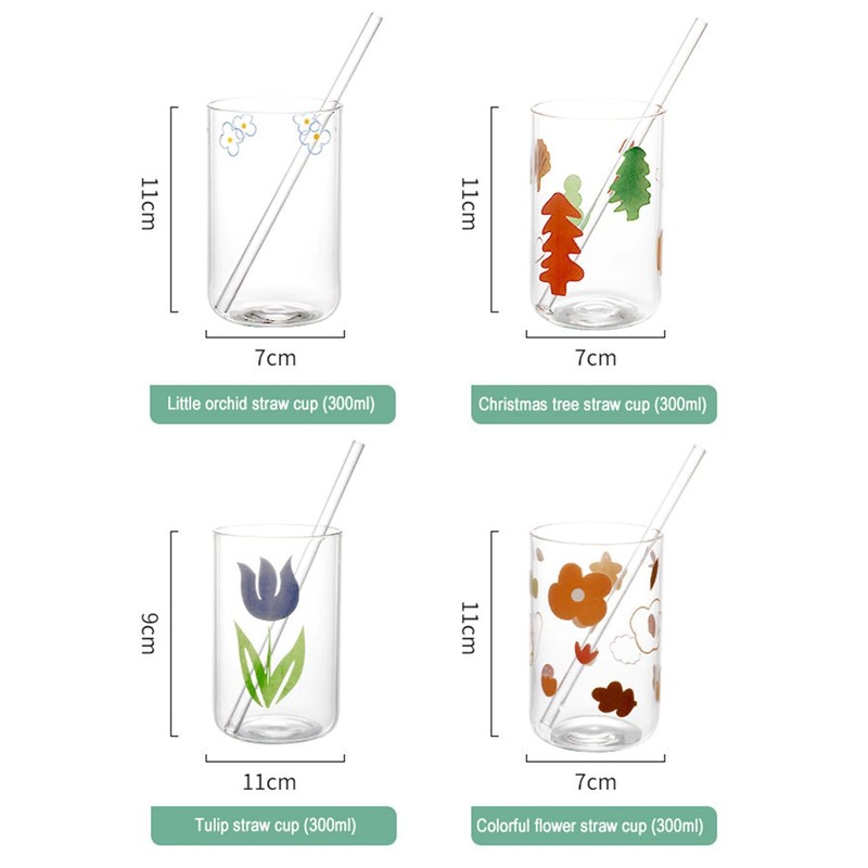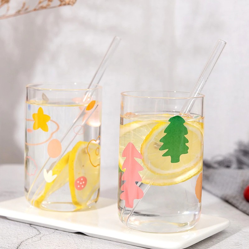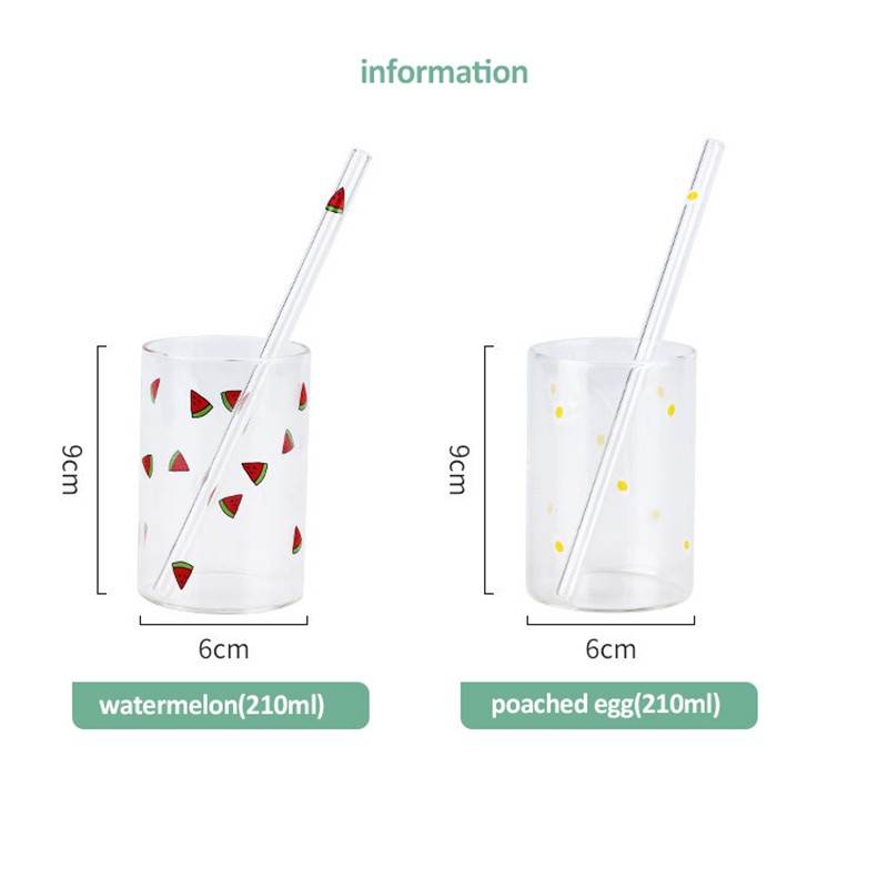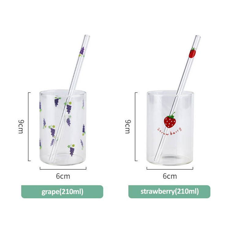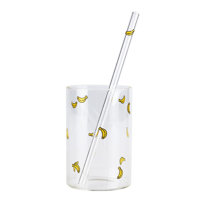 Caneca De Vidro Com Estampa De Frutas, Copo Vidro Fofo, Resistente Ao Calor Suco Leite Copo Água Com Canudo Cerveja Copo De Café Uísque, Chá
