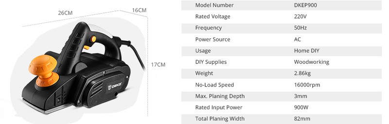 Deko-Plaina Elétrica Dkep900, 220V, 900W Ferramenta Elétrica Portátil, Com Acessórios