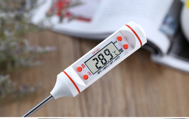 -A sonda é feita de aço inoxidável, faixa de medição: cera, sabão, temperatura da água, alimentos, líquido, pasta, temperatura do óleo, temperatura do leite, chá, sopa, cerveja, etc