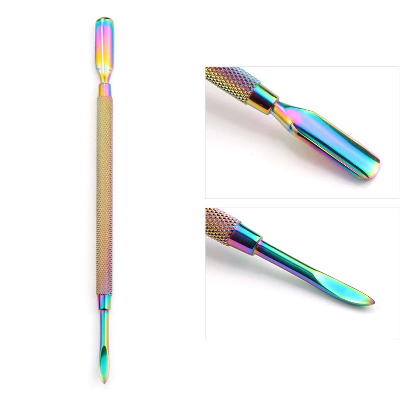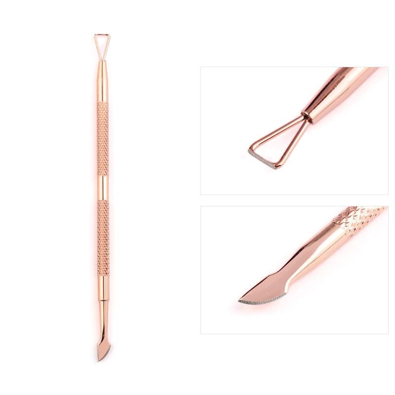 A extremidade tipo colher (ponta curvada) é usada para empurrar as cutículas-o design ajuda facilmente a moldar as cutículas.