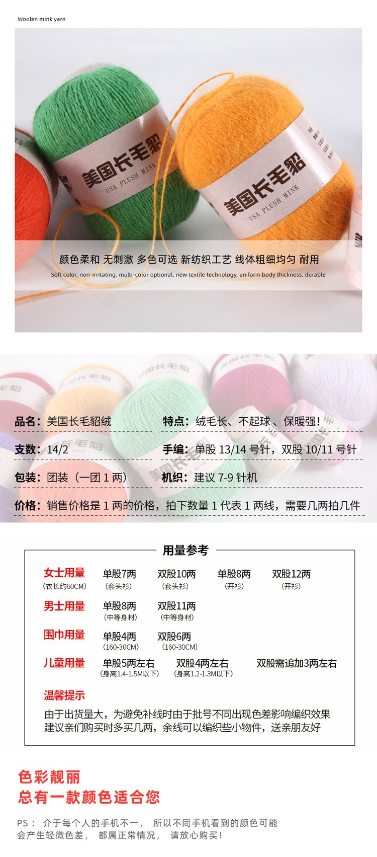 1. peso: 50 + 20g(50g bola básica mais 20g fio parceiro. Sugerimos tricotá-los juntos para fortalecer seu item de tricô.) (5g é normalmente, se você se importa, por favor não encomendá-lo, obrigado por sua compreensão)