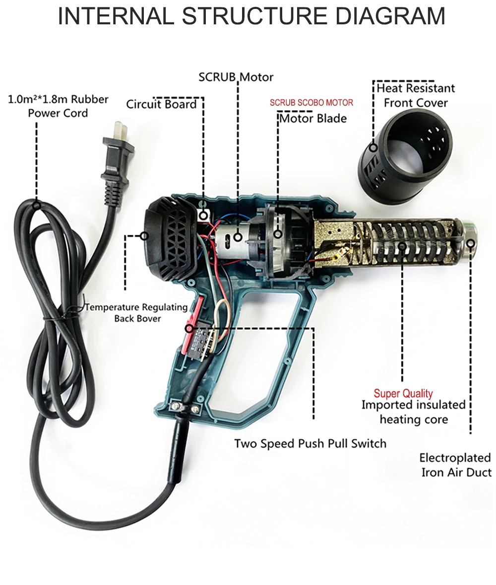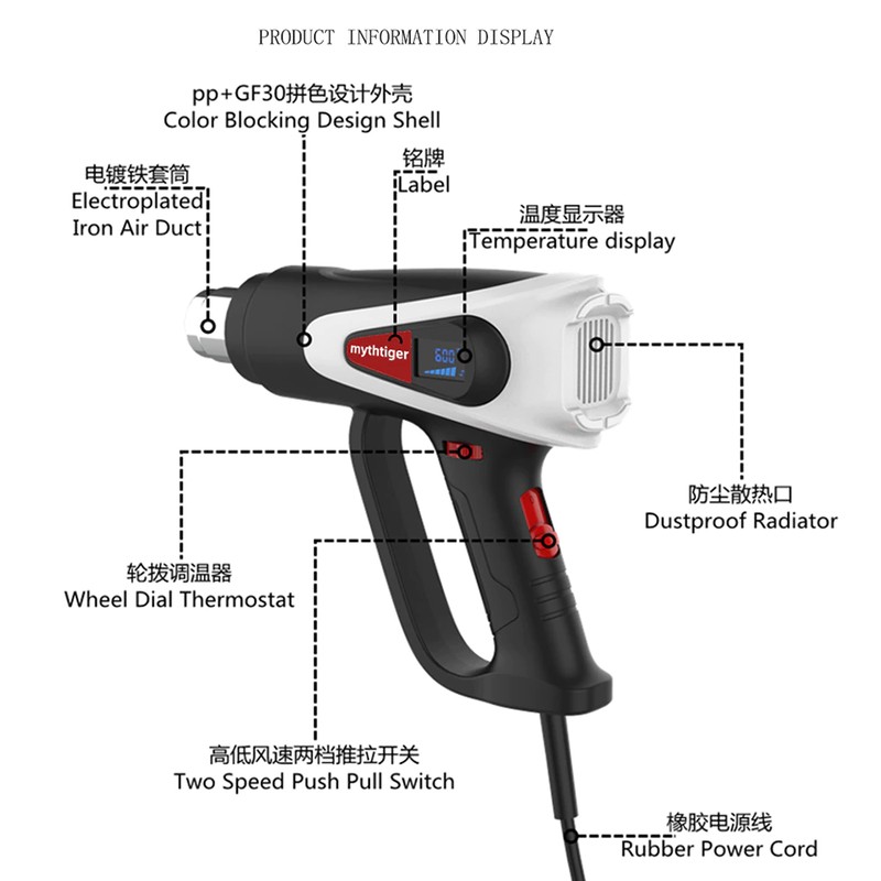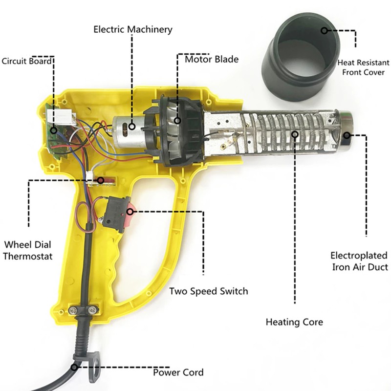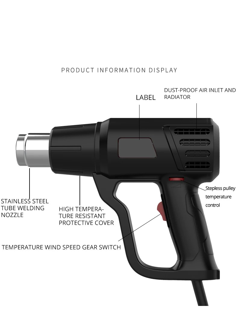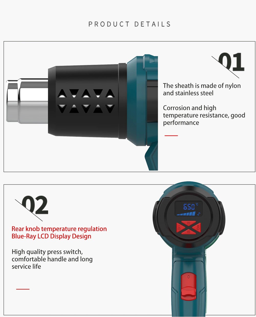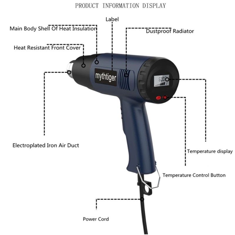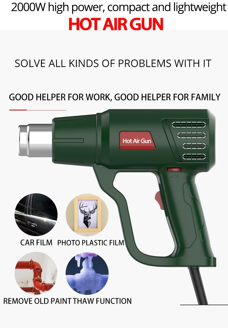 Industrial Secador De Cabelo Pistola Calor 2000W Pistola Ar Quente Secador De Ar Para Solda Ventilador Térmico Estação Solda Encolher Ferramentas De Envolvimento