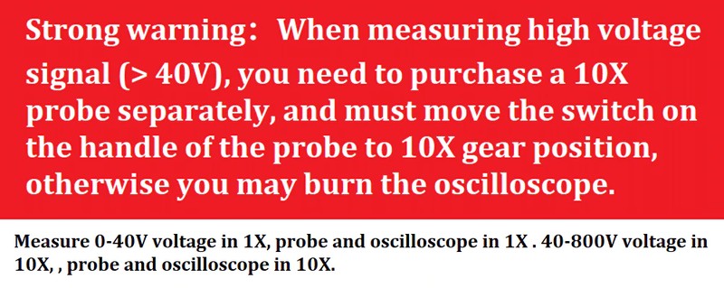 5: tensão de entrada máxima: 40 v (sonda 1x), 800 v (sonda 10x)