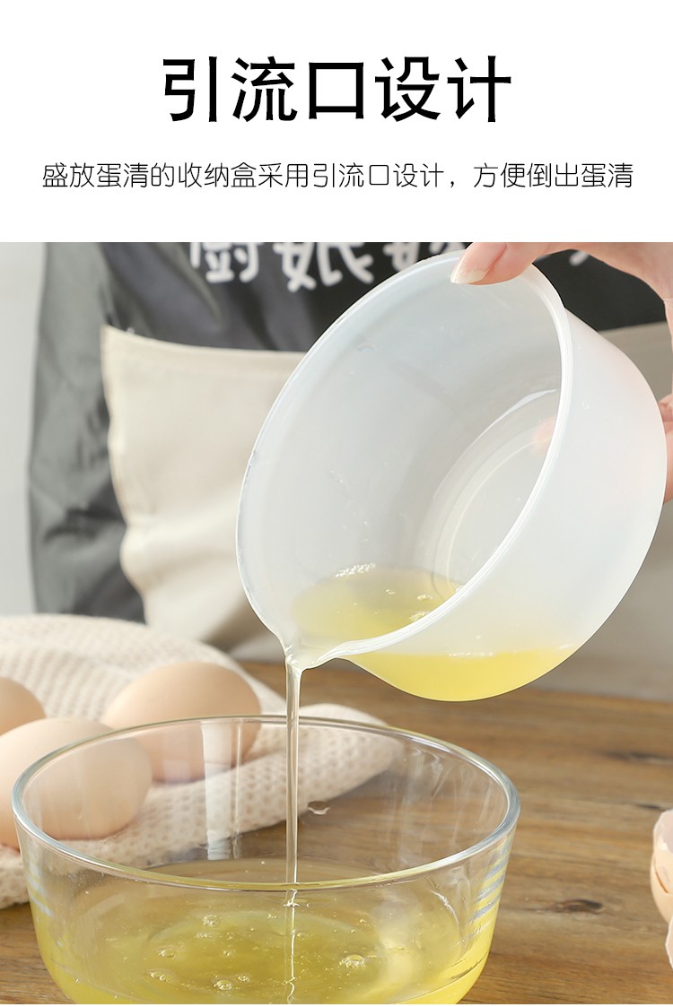 3. design de porta de desvio: a caixa de armazenamento contendo as claras de ovo é projetada com uma porta de desvio, que é conveniente para derramar as claras de ovo.