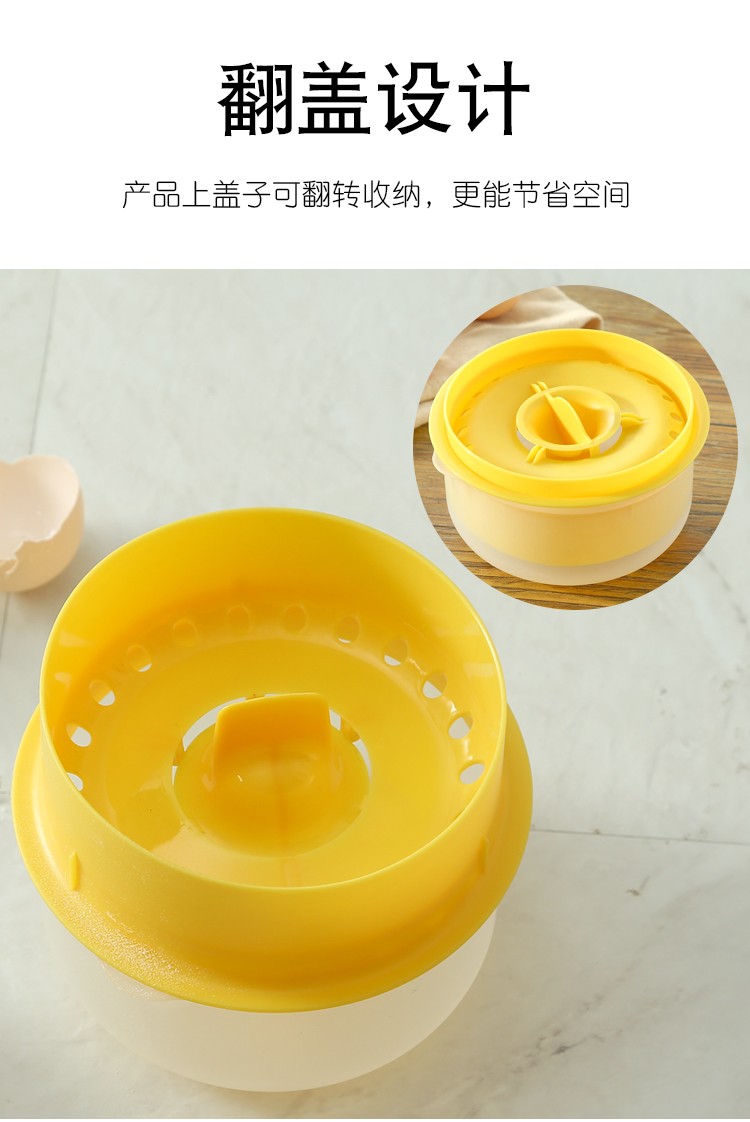 1. casca de ovo quebrado: com seu próprio dispositivo de quebra de casca, o ovo pode ser aberto facilmente, e a gema não é danificada, economizando tempo e esforço.