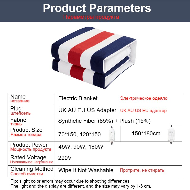 Nota: por favor, coloque sua colcha grossa, cubra o cobertor elétrico sobre 30-60minutes, ou a temperatura sobe não obviamente.