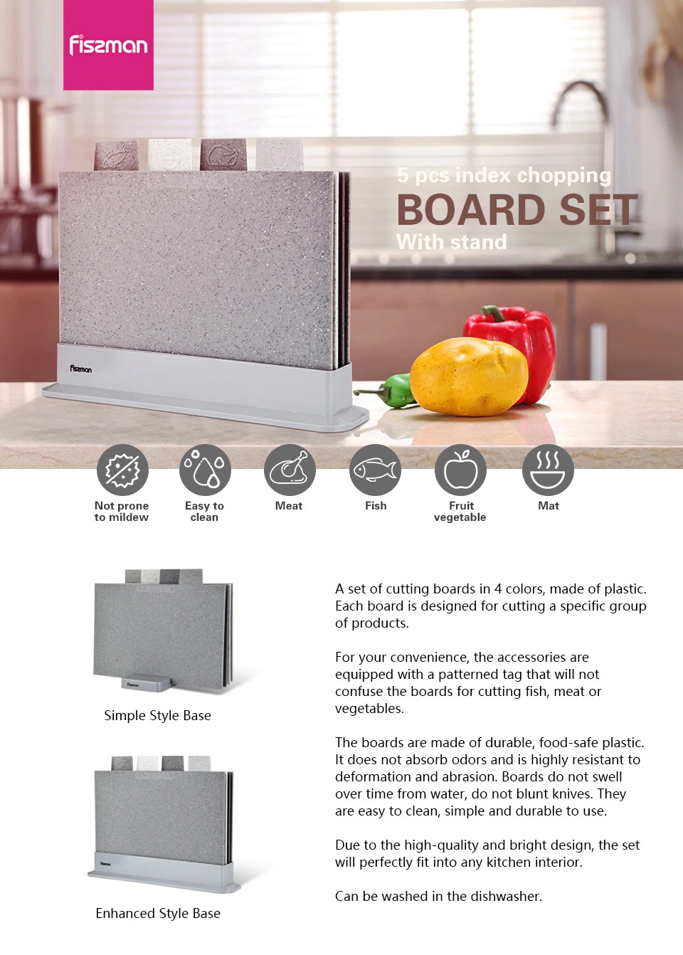 Esteiras Plásticas Antibacterium Do Revestimento De Mármore Do Bloco De Corte Plástico Das Placas De Corte Do Fissman Antiderrapante Com Stand-4Pcs Grupos