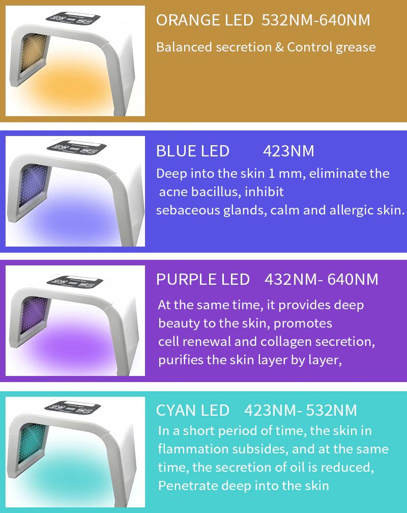 Nano 7 nano-tecnologia: luzes de fototerapia, combinadas com 7 cores de luzes led, com diferentes comprimentos de onda, usadas para tratar problemas de pele, ajudar a restaurar a aparência jovem.