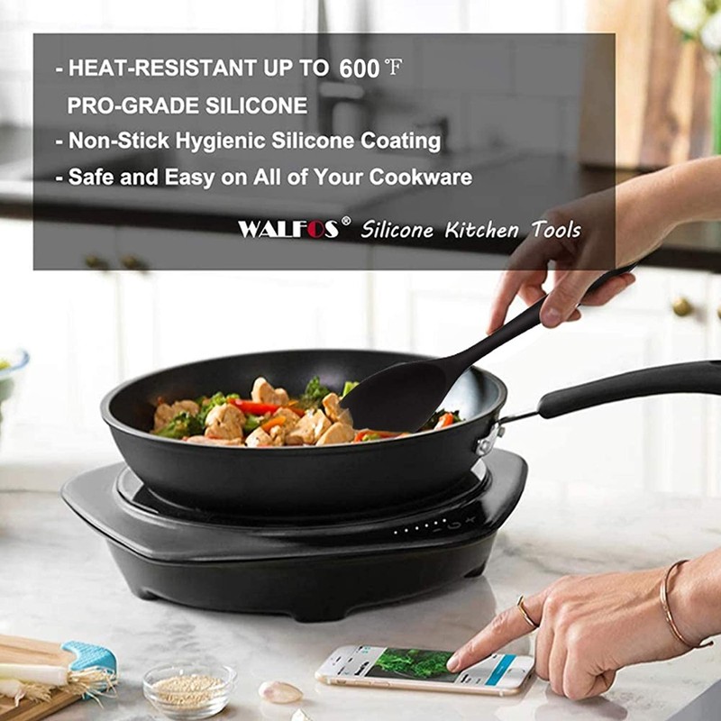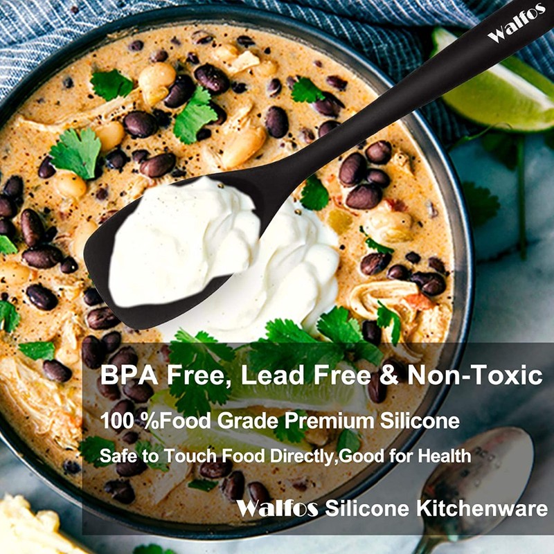 Walfos grau alimentício silicone cozinhar colher essencial resistente ao calor flexível antiaderente silicone cozimento colher de mistura espátula