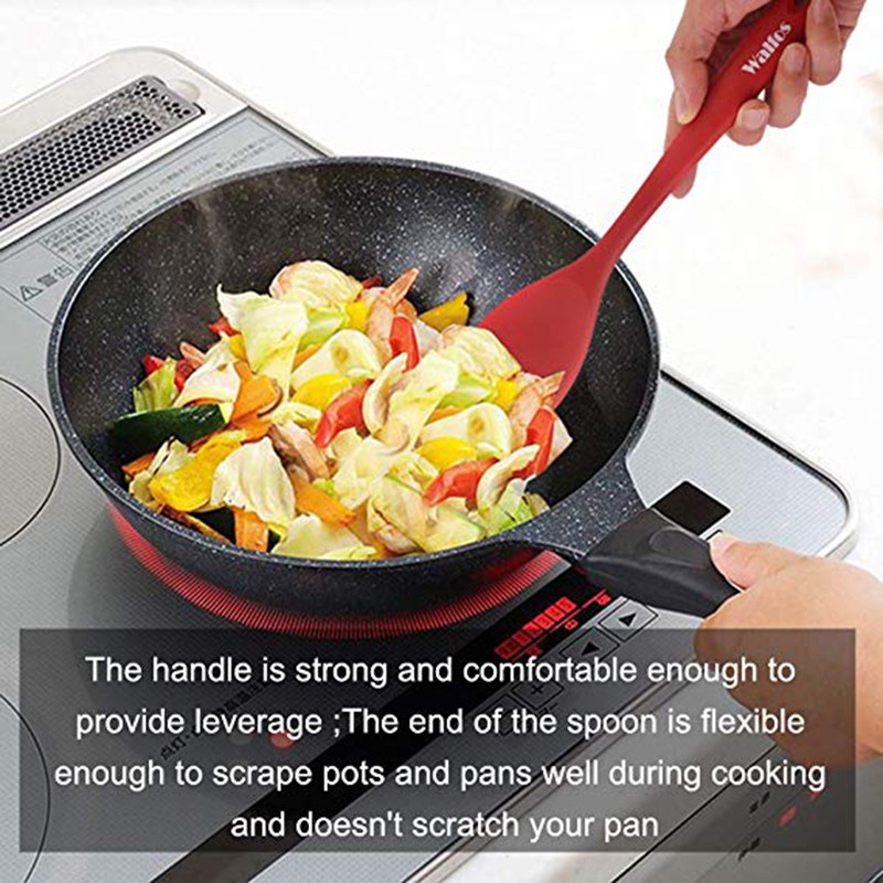 Walfos grau alimentício silicone cozinhar colher essencial resistente ao calor flexível antiaderente silicone cozimento colher de mistura espátula