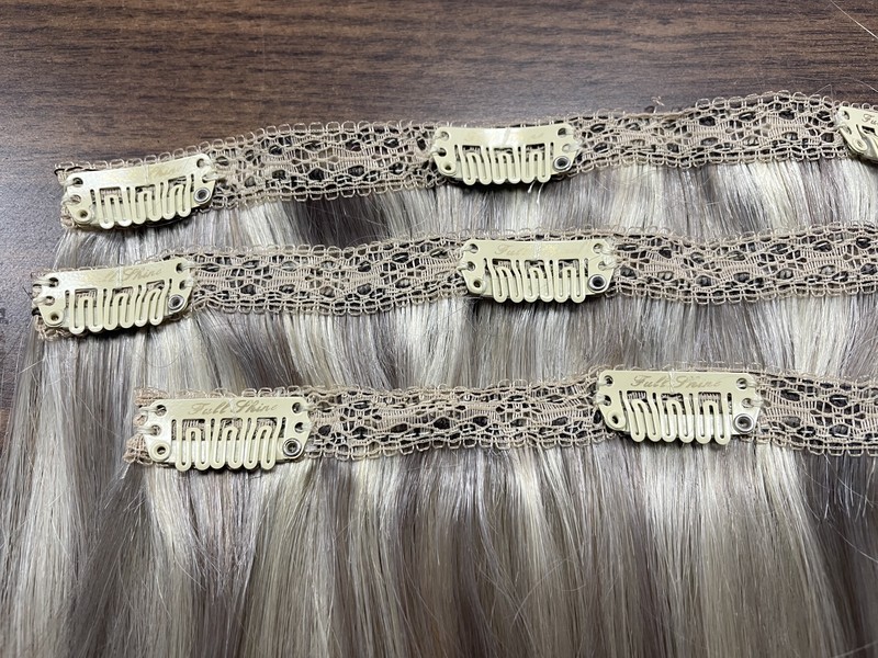 8. designnovo conjunto design】equipe de brilho completo só fez 3 peças para 50 gramas clipe de renda em extensões de cabelo. Sabemos que você não gosta de pequenos pedaços. Então 1x8 Polegada peças de trama de cabelo com 3 clipes; 2x10.5 Polegada peça de trama de cabelo com 4 clipes totalmente! Embora você queira 150 gramas, há apenas 9 peças totalmente! Não precisa se preocupar com onde devo aplicar as peças, nunca!