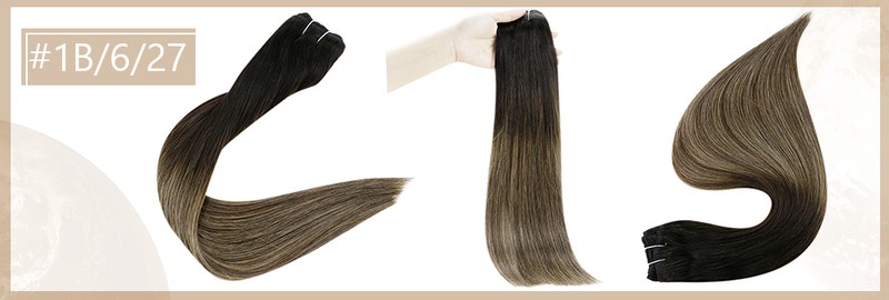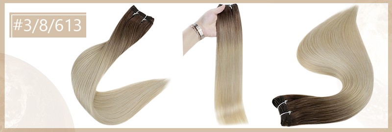 Brilho Completo Extensões De Trama Do Cabelo Humano Feixes De Cabelo Ombre Cor Loira 100G Costurar Em Seda Reta Remy Pele Trama Dupla Para Salão De Beleza