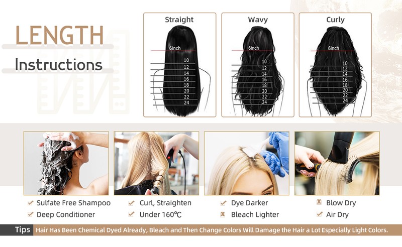 1. sobre a lavagem: por favor, fique longe de shampoo ou condicionador que contém sulfato ou ácido clorídrico. lave o cabelo 2-3 vezes por semana.2. aboutdyeing: trama completa do cabelo humano do brilho pode ser tingida mais escura. Por favor, tente uma pequena strand firat ou vá para o seu cabeleireiro profissional.