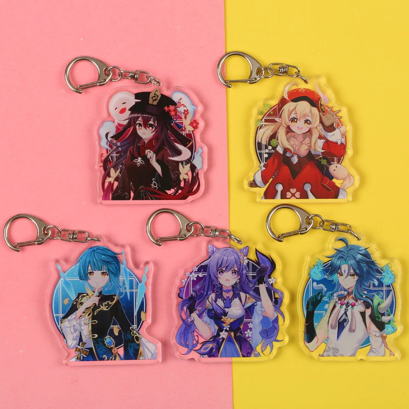 Genshin Impacto Kaedehara Kazuha Barbara Gunnhildr Acrílico Chaveiro Dos Desenhos Animados Cosplay Chaveiro Pingente Adereços Acessórios