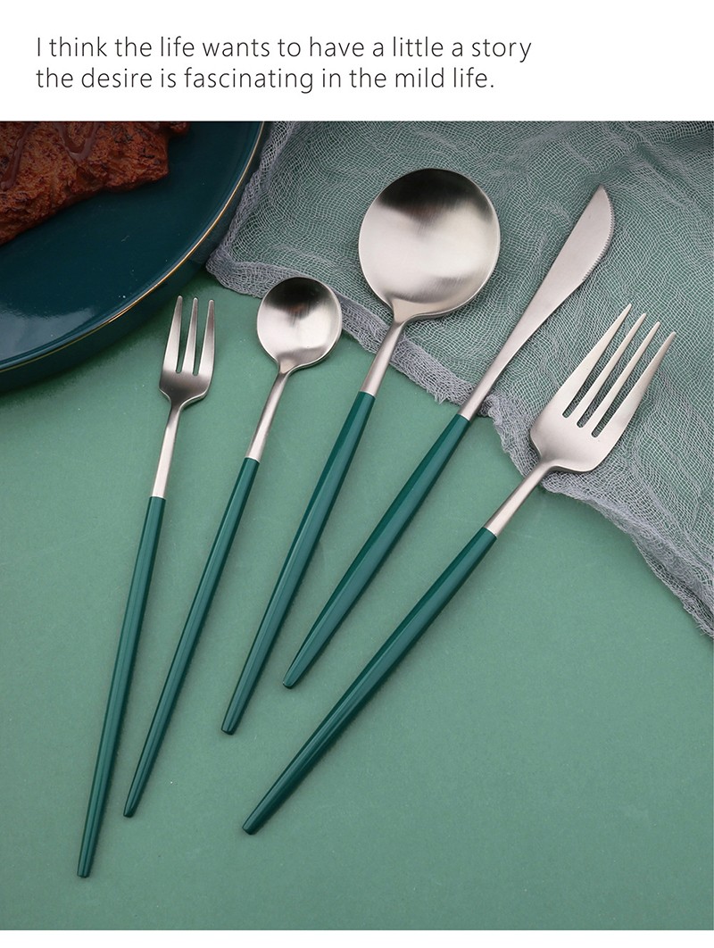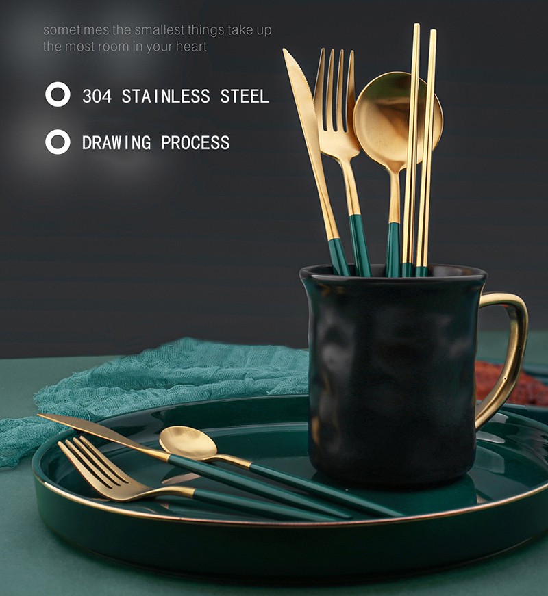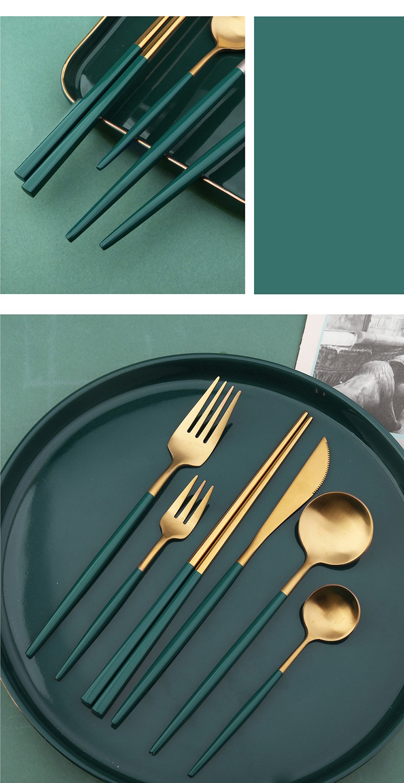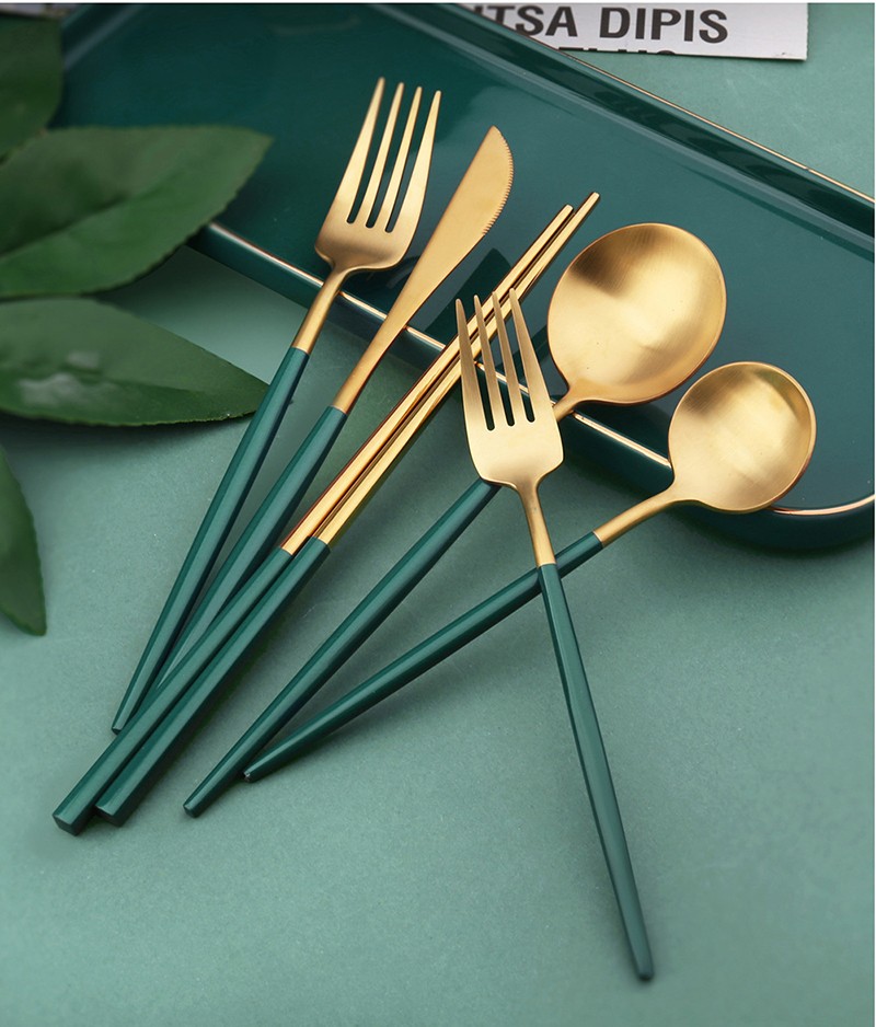 Verde Ouro Estilo Nórdico Aço Inoxidável Colher Garfo Faca Chopstick Facas De Bife Sopa Colher Faca De Mesa Para Cozinha