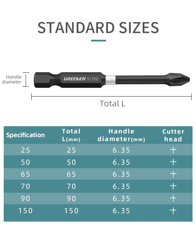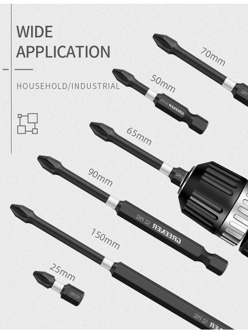 Mais Verde Forte Magnético Cabeça De Lote Cruz Alta Dureza Mão Broca Parafuso Chave De Fenda Elétrica Conjunto 50 65 70 90 150Mm Impacto