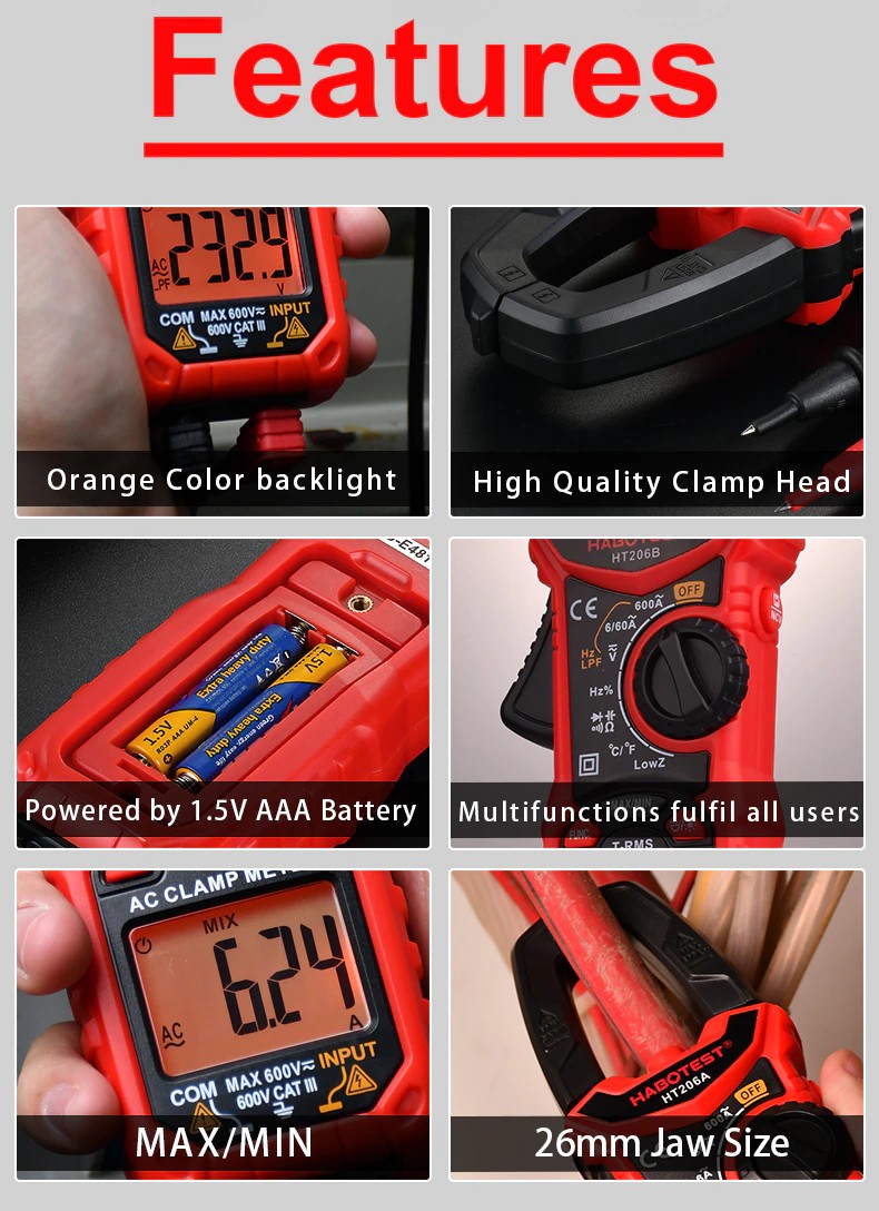 Habertest Ht206 Ac Dc Digital Braçadeira Medidor Multímetro Pinza Amperimetrica Verdadeiro Rms Alta Precisão Capacitância Ncv Ohm Hz Tester