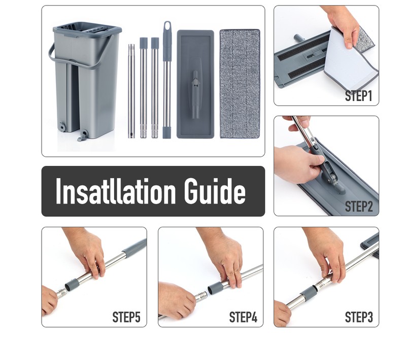 Mão Livre Chão Plano Mop E Balde Conjunto Para O Sistema De Limpeza De Piso Doméstico Profissional Com Almofadas De Microfibra Lavável Para Madeira