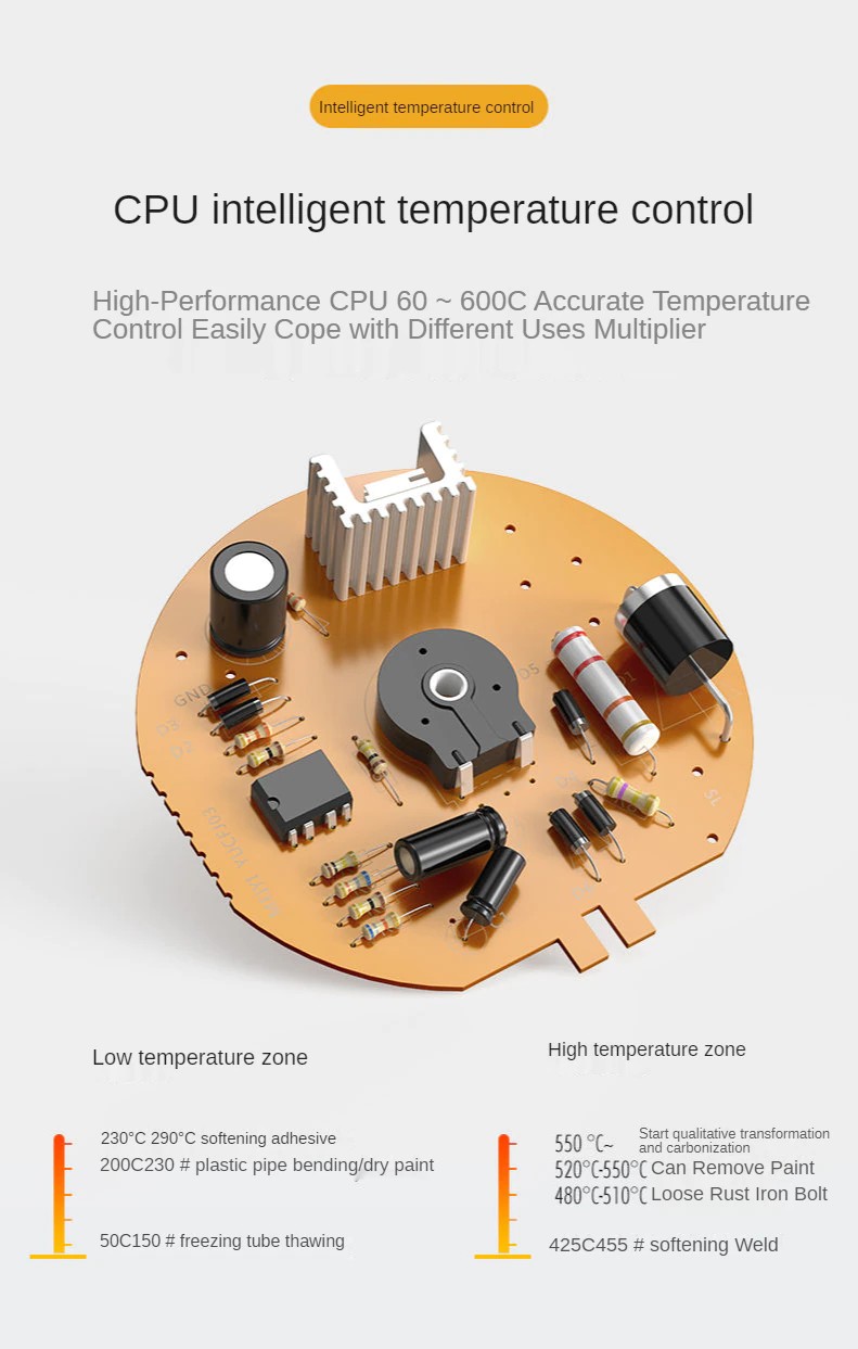 Pode ser aplicado em solda, soldagem de pvc, dar forma, secagem, encolher-encaixe, descascar tinta, etc.